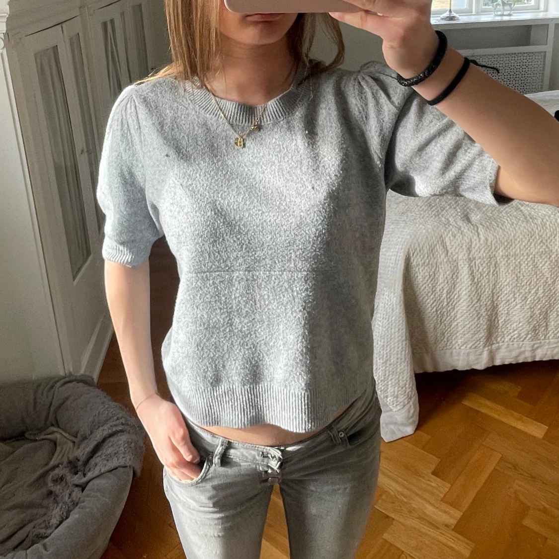 Säljer en stilren grå tröja från ONLY. Tröjan har korta ärmar och en ribbad kant vid ärmslut och nederkant. Perfekt för en avslappnad look. 🩶