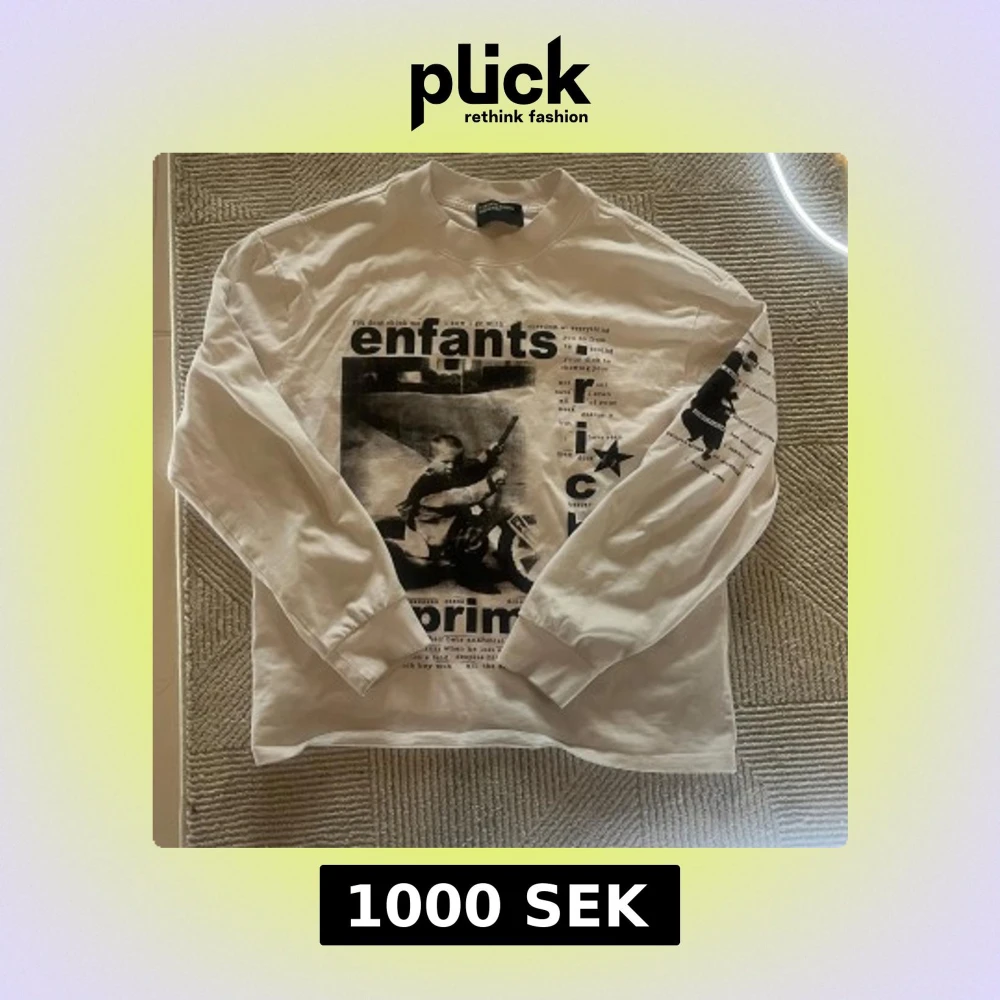 Vit långärmad tröja från Enfants Riches Déprimés med svart tryck framtill och på ena ärmen. Lätt använd 8/10 skick. KOM MED PRIS