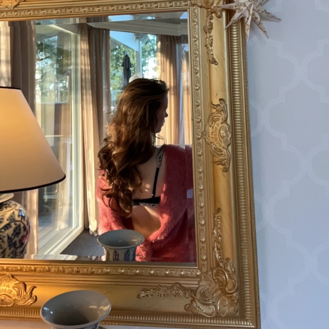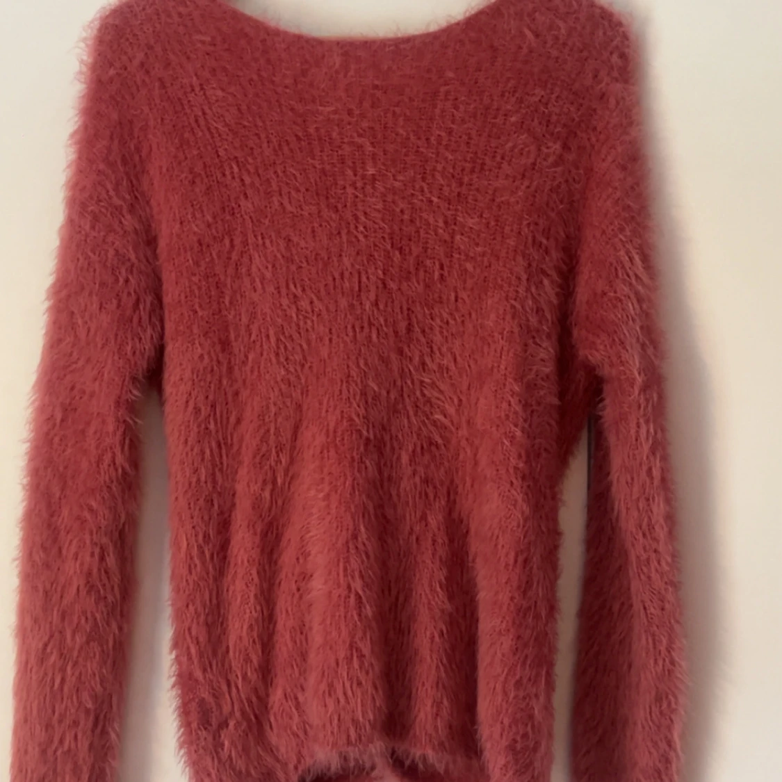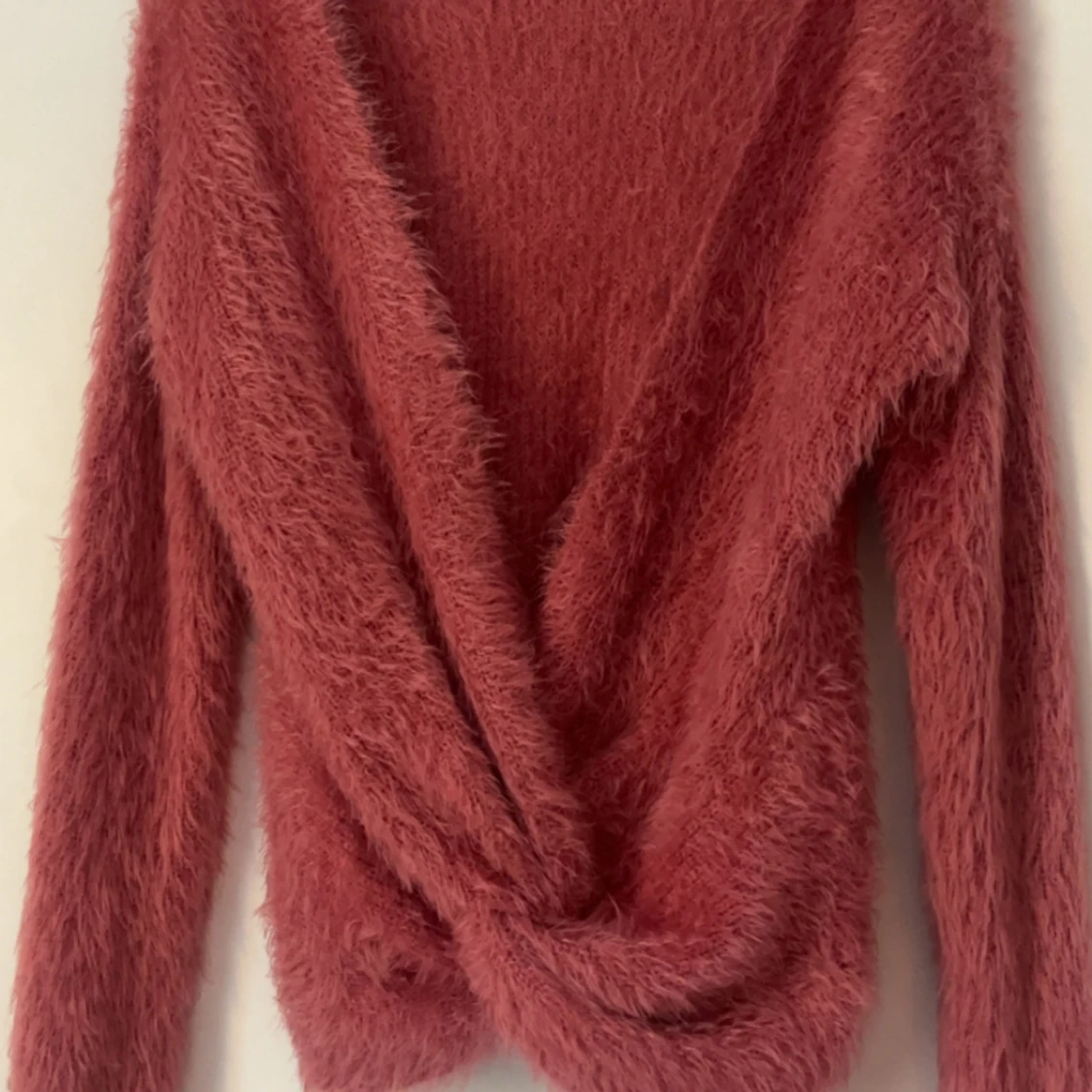 Supermjuk och fluffig rosa tröja med omlottdesign och öppen rygg. Jag tycker jätte mycket om den här tröjan men får tyvärr inte användning längre. Den har dock ett litet hål längst ner på sidan av tröjan men inget som syns!💞