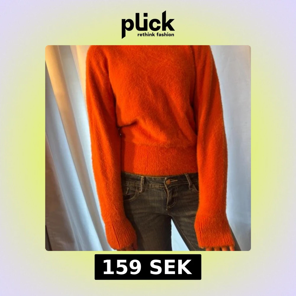 Supermjuk och fluffig orange stickad tröja med lång ärm och ribbade muddar. Tröjan har en lite högre hals och sitter snyggt i midjan. Perfekt för dig som vill ha en färgklick i garderoben och gillar en cozy vibe.