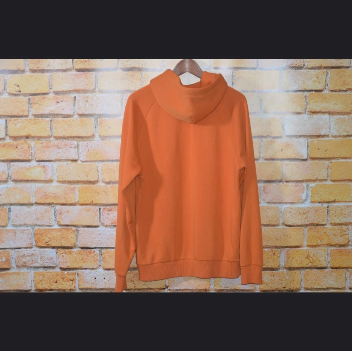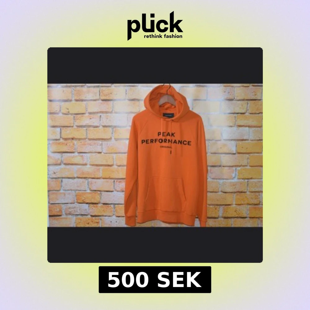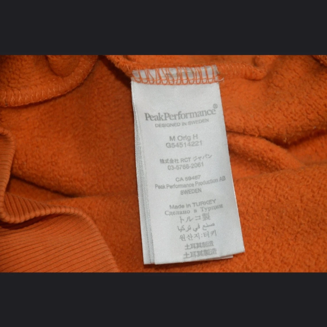Snygg orange hoodie från Peak Performance med svart broderad logga på bröstet. Tröjan har huva med dragsko, känguruficka och långa ärmar. Perfekt för dig som gillar streetwear och vill sticka ut med en färgstark look.