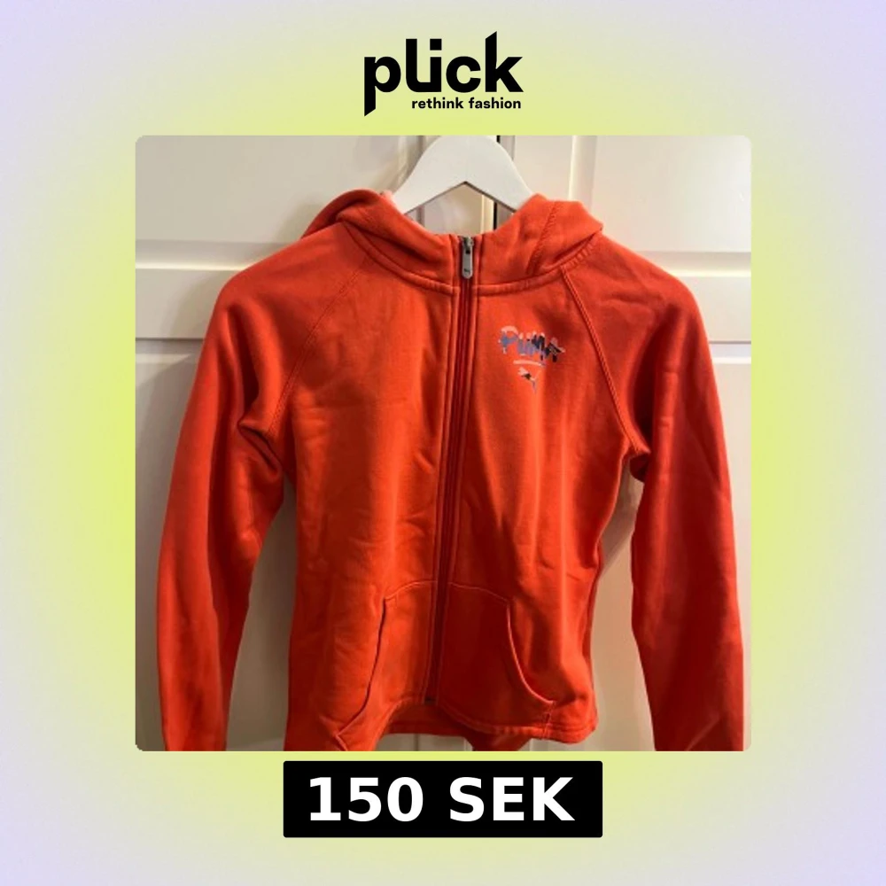 Säljer en cool orange hoodie från Puma med dragkedja och mönstrad insida av huvan i blått och orange. Perfekt för en sportig look eller avslappnad stil. Den har långa ärmar och en bekväm passform.