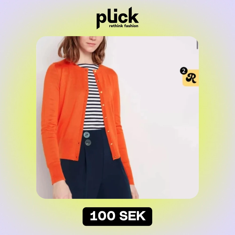 En orange kofta som ser ut att vara helt ny. Den är slutsåld på Lindex där orginaltrogen är 349 kr.