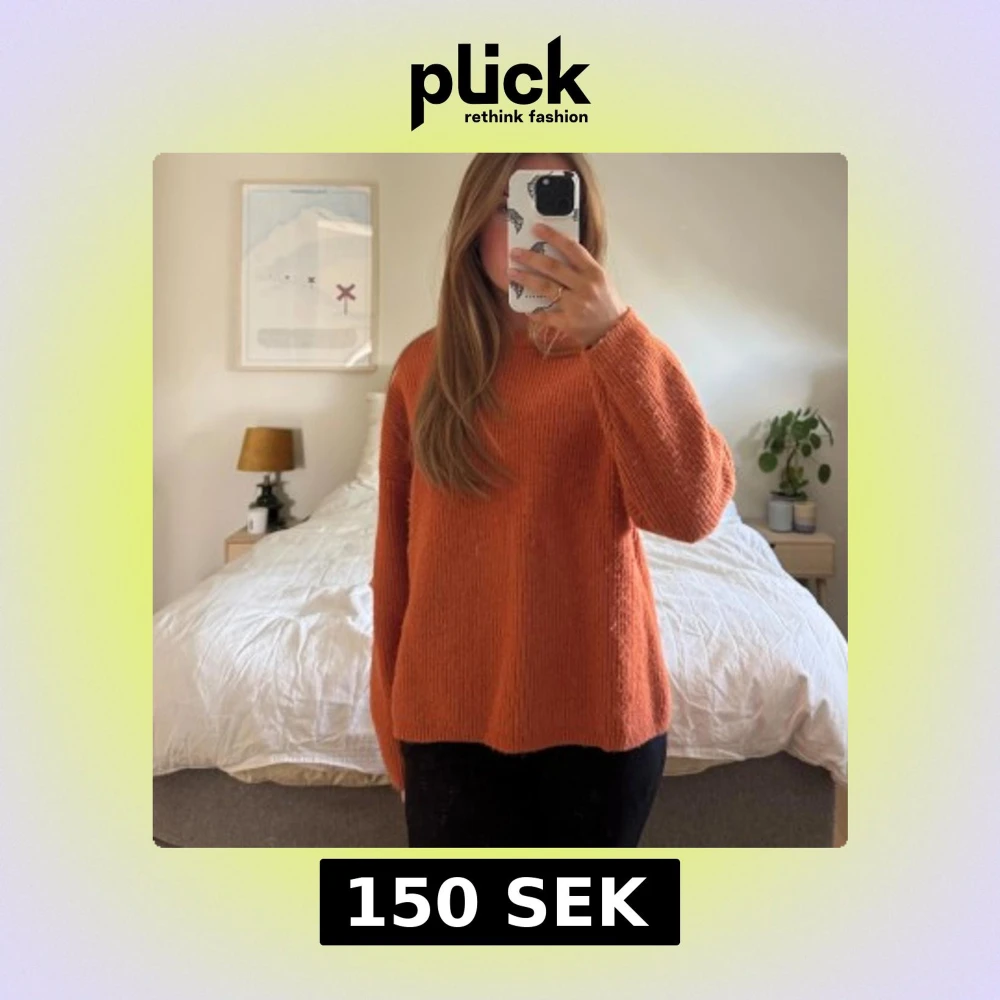Mysig orange stickad tröja med rund hals och lång ärm. Tröjan har en loose passform och är perfekt för lager-på-lager. Enkel och stilren design som passar till jeans eller leggings.