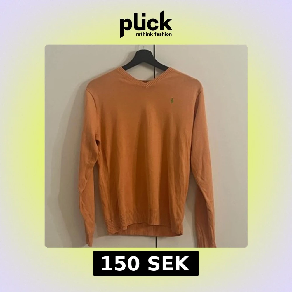 Snygg orange v-ringad tröja från Ralph Lauren med liten grön broderad logga på bröstet. Tröjan har långa ärmar och ribbade muddar vid ärmslut och nederkant. Perfekt för dig som gillar klassisk stil med en färgklick.