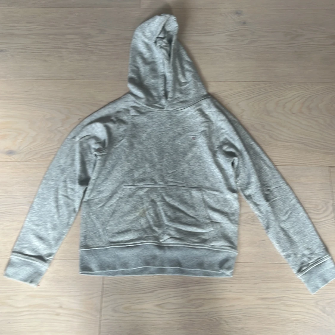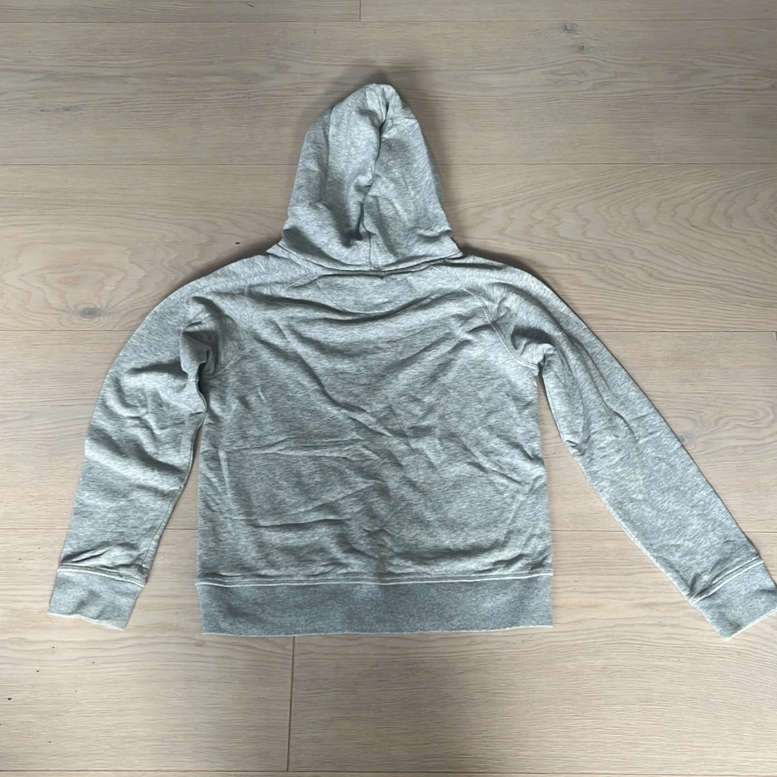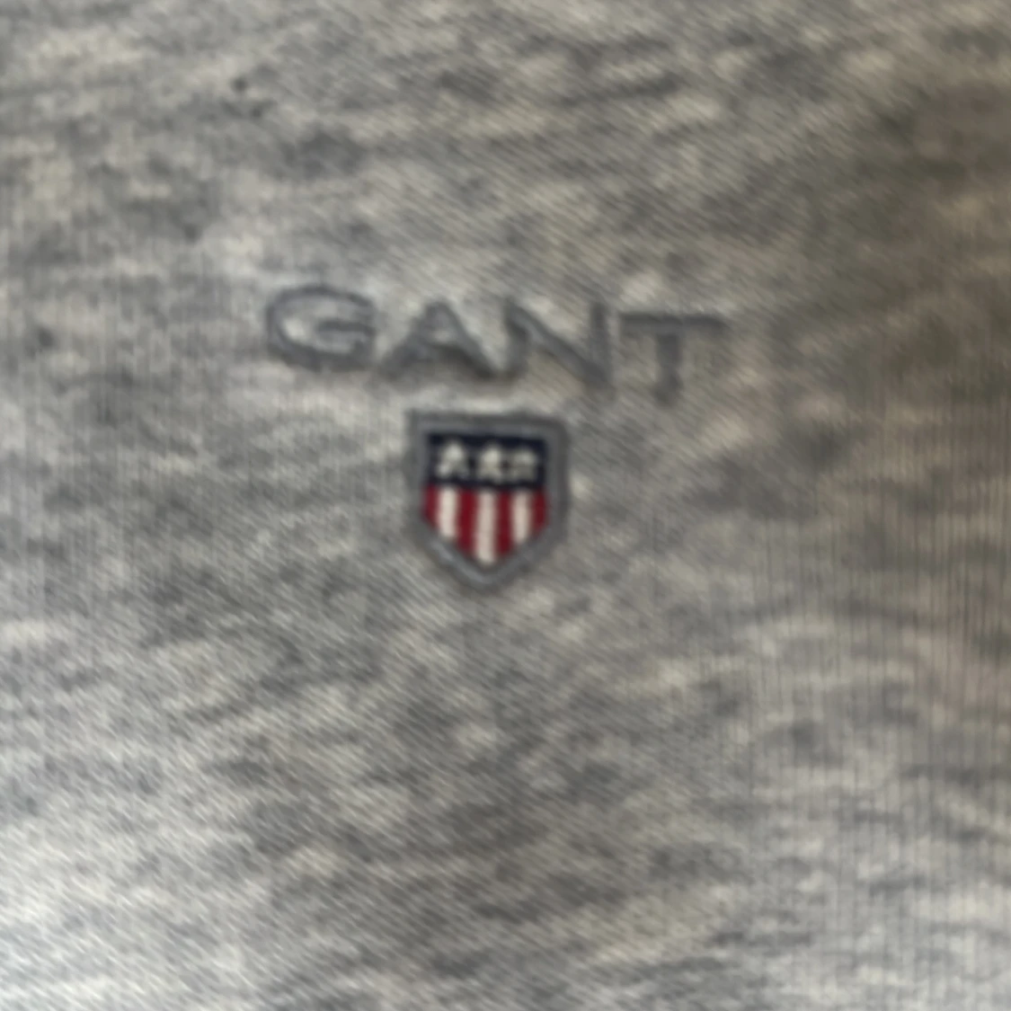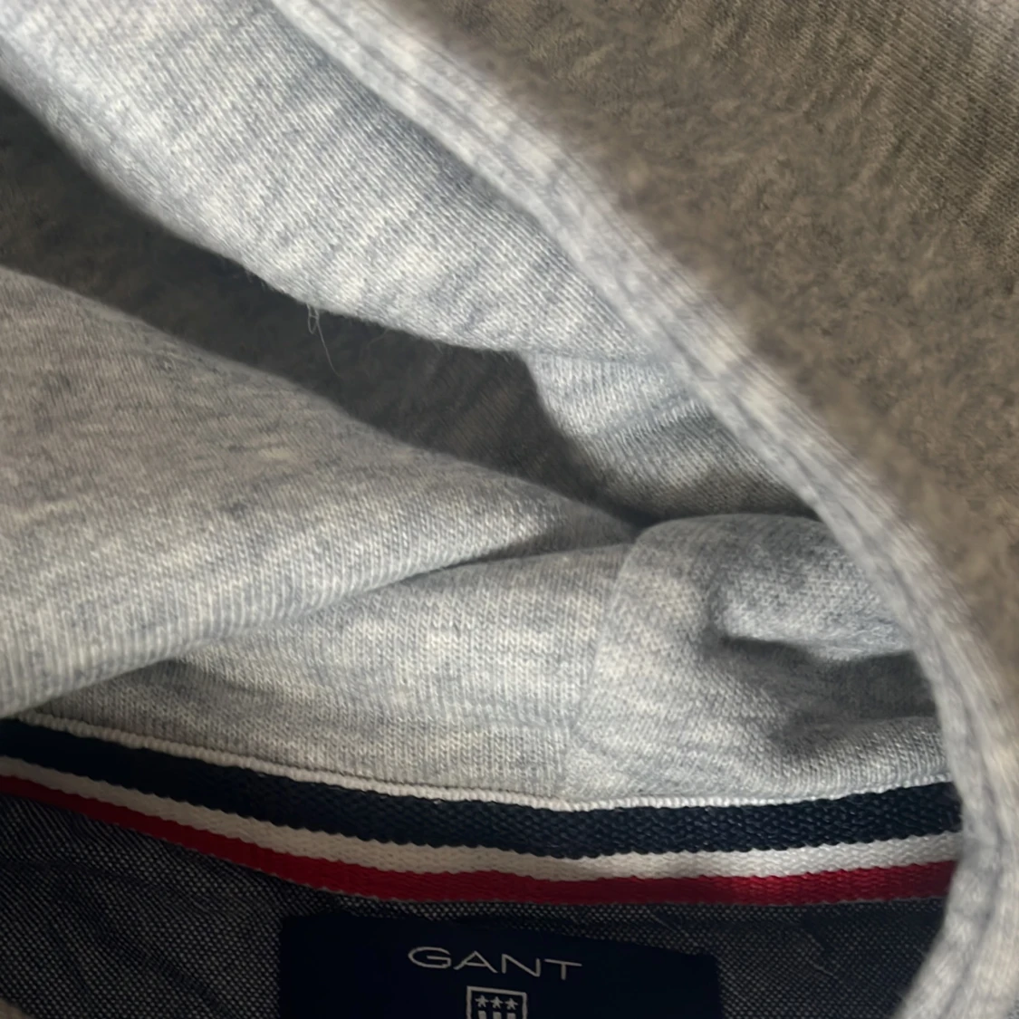 Snygg grå hoodie från GANT med broderad logga och sköld på bröstet. Klassisk känguruficka framtill, ribbade muddar och huva. Perfekt för en chill och stilren look. Mjuk bomullsblandning som är skön att ha på sig. Aldrig använd.