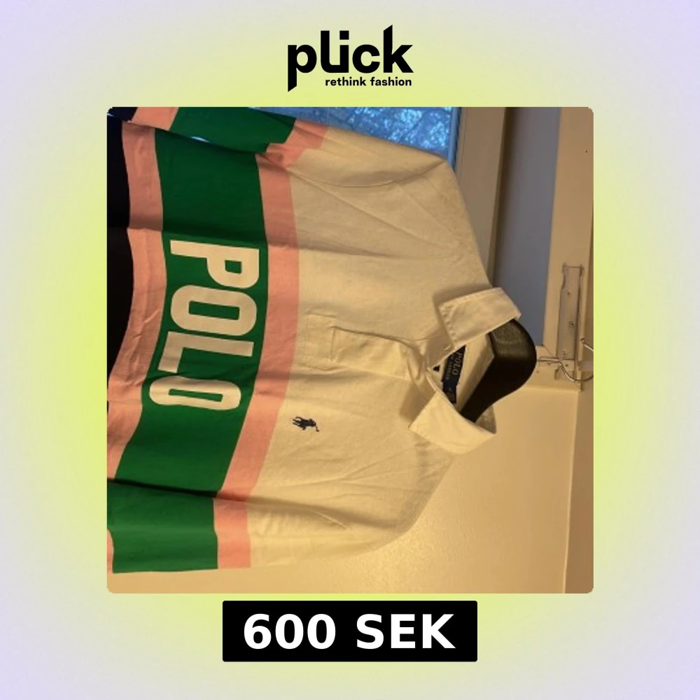 Säljer en långärmad pikétröja från Polo Ralph Lauren med breda ränder i vitt, marinblått, grönt och rosa. Stor POLO-tryck framtill och klassisk krage. Tröjan är i bomull och har en relaxed fit, perfekt för en chill och sportig stil. Använts varsamt endast två gånger.