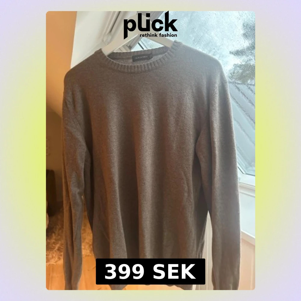 Snygg brun stickad tröja från Oscar Jacobson i storlek L. Tröjan har rund hals och långa ärmar med ribbade muddar vid hals, ärmslut och nederkant. Köpt för runt 1000kr