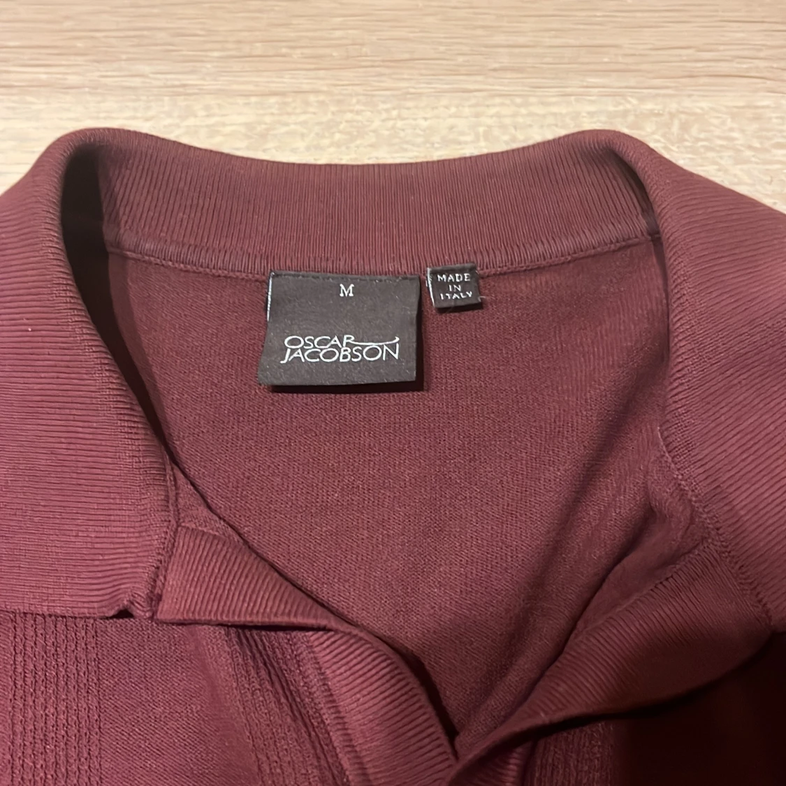 Snygg vinröd pikétröja från Oscar Jacobson i storlek M. Skriv vid funderingar!