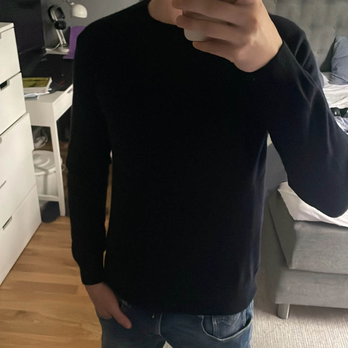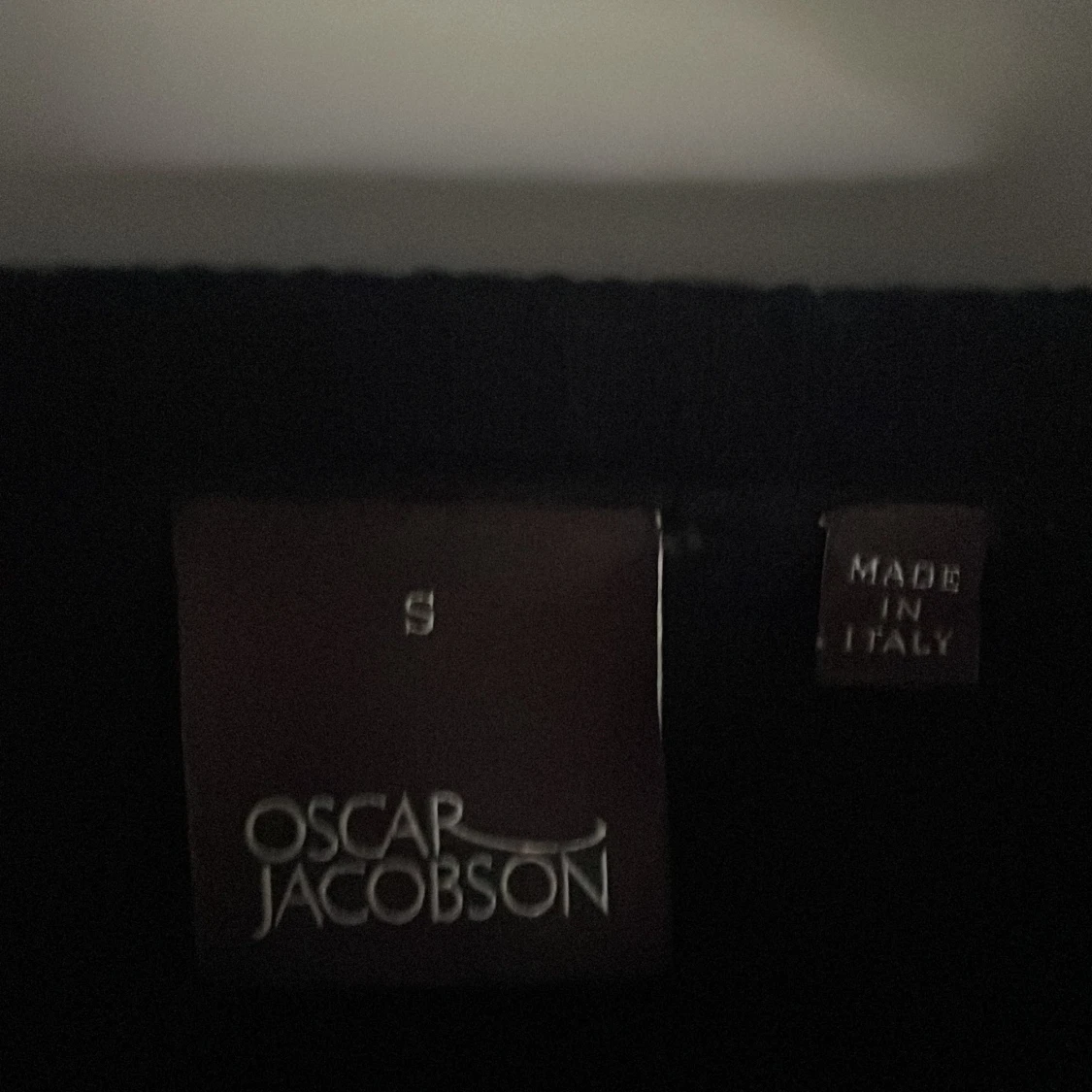 Klassisk marinblå stickad tröja från Oscar Jacobson i storlek S. Enkel och stilren design med rund halsringning och långa ärmar. Tillverkad i Italien, Perfekt nu inför hösten och vintern. Nypris 1300 mitt 719
