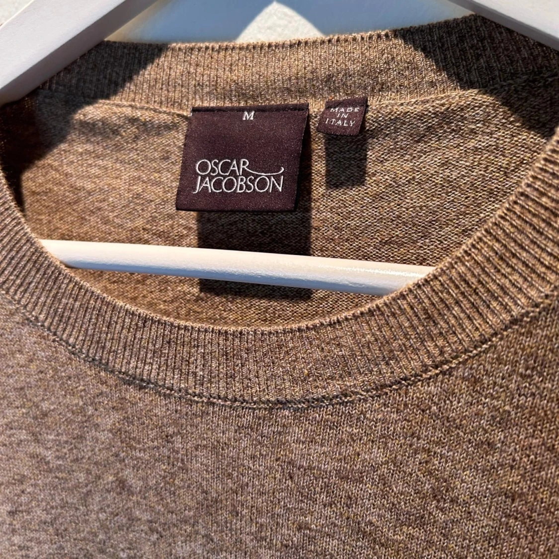 Säljer en stilren och bekväm beige tröja från Oscar Jacobson i storlek M. Perfekt för både höst och vinter. Köpt i butik för 1200kr. Sparsamt använd då den inte riktigt passa. Inga defekter.