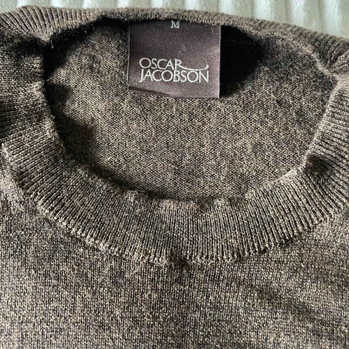Säljer en fin stickaf tröja från Oscar Jacobsson! Tröjan är nästan helt oanvänd, inga tecken på användning. Tröjan är i storlek M men skulle säga att den sitter som en S. Tröjan är i 100% merinoull, hör av er om ni har några funderingar!😁