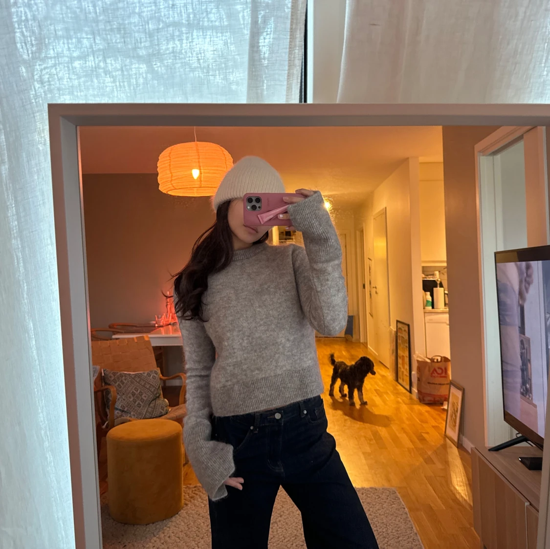 så snygg skickad tröja i mohair från other stories i stl s! långa armar med slits, så snygg detalj, den är även lite kortare!😍färgen ser ni bäst på sista bilden!
