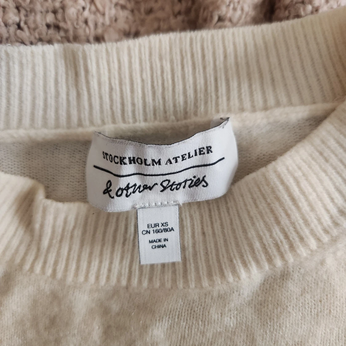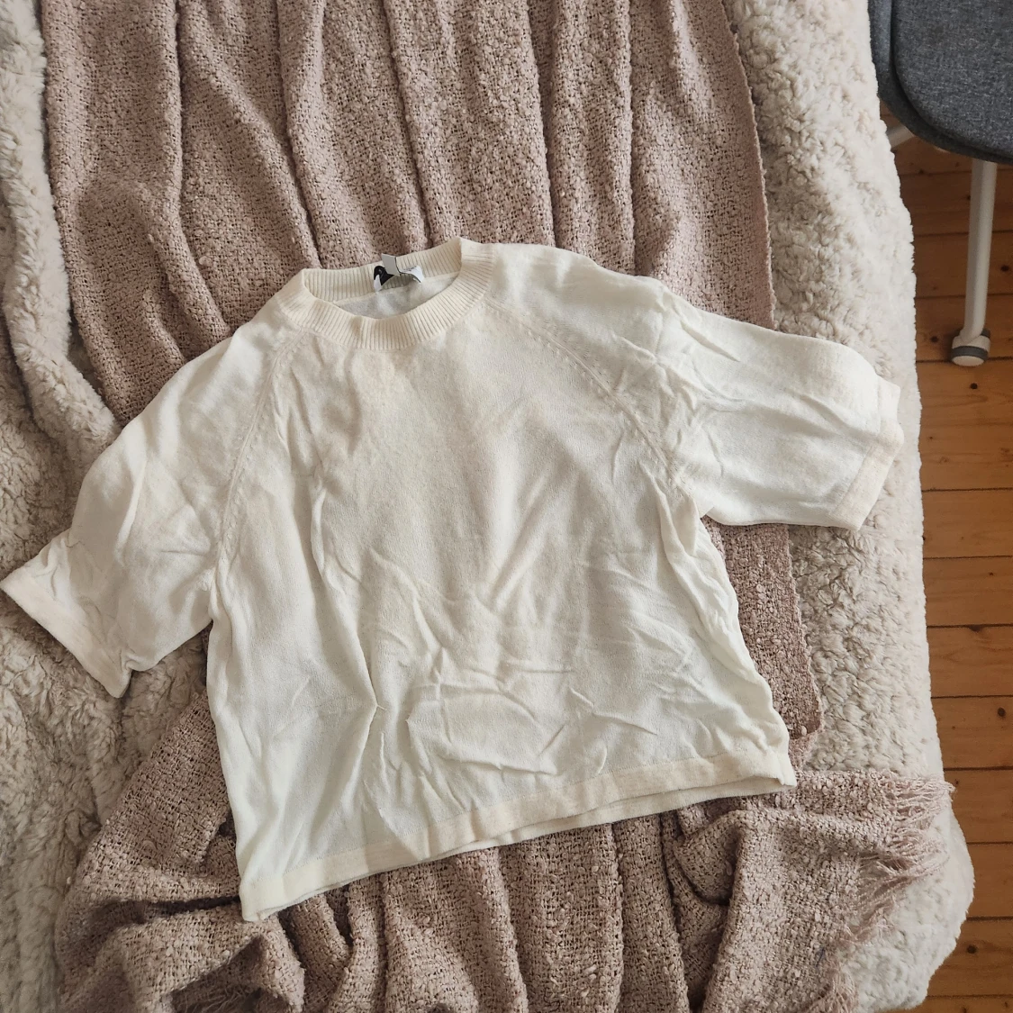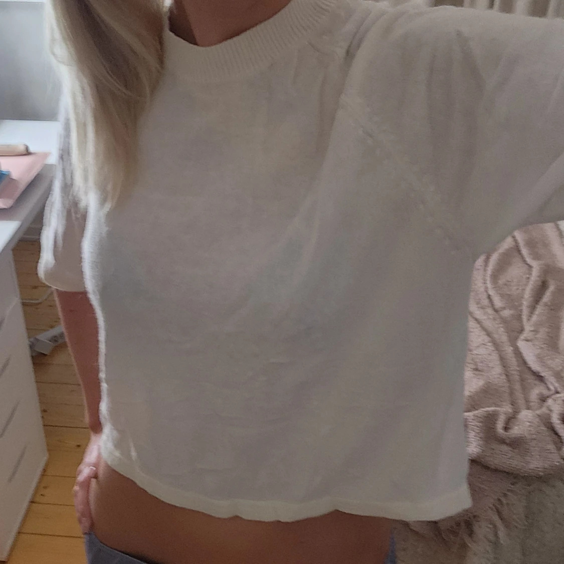 Säljer en vit stickad tröja från & Other Stories i storlek XS. Tröjan har korta ärmar, ribbad rund halsringning och är tillverkad i ett mjukt material som känns skönt mot huden. Perfekt för en avslappnad och stilren look. Den har förstörts lite i tvätten och därmed blivit tunnare, men fortfarande fin💗
