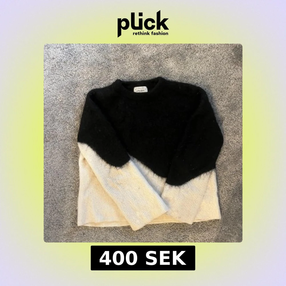 Säljer en snygg stickad tröja från & Other Stories med cool diagonal färgblock i svart och vit. Tröjan har långärmad passform och är gjord i ett mjukt, fluffigt material som känns riktigt mysig. Perfekt till höst och vinter när du vill vara både varm och stilren. Använd några antal gånger💕