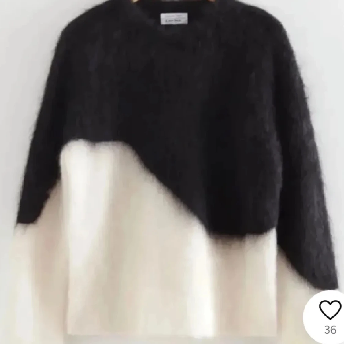 Säljer en supermysig tröja från & Other Stories i svart och vit. Den har en cool diagonal design och är perfekt för höst och vinter. Tröjan är i bra skick och gjord av ett mjukt material som håller dig varm. Perfekt för att mysa i eller för en stilren look! 🖤🤍