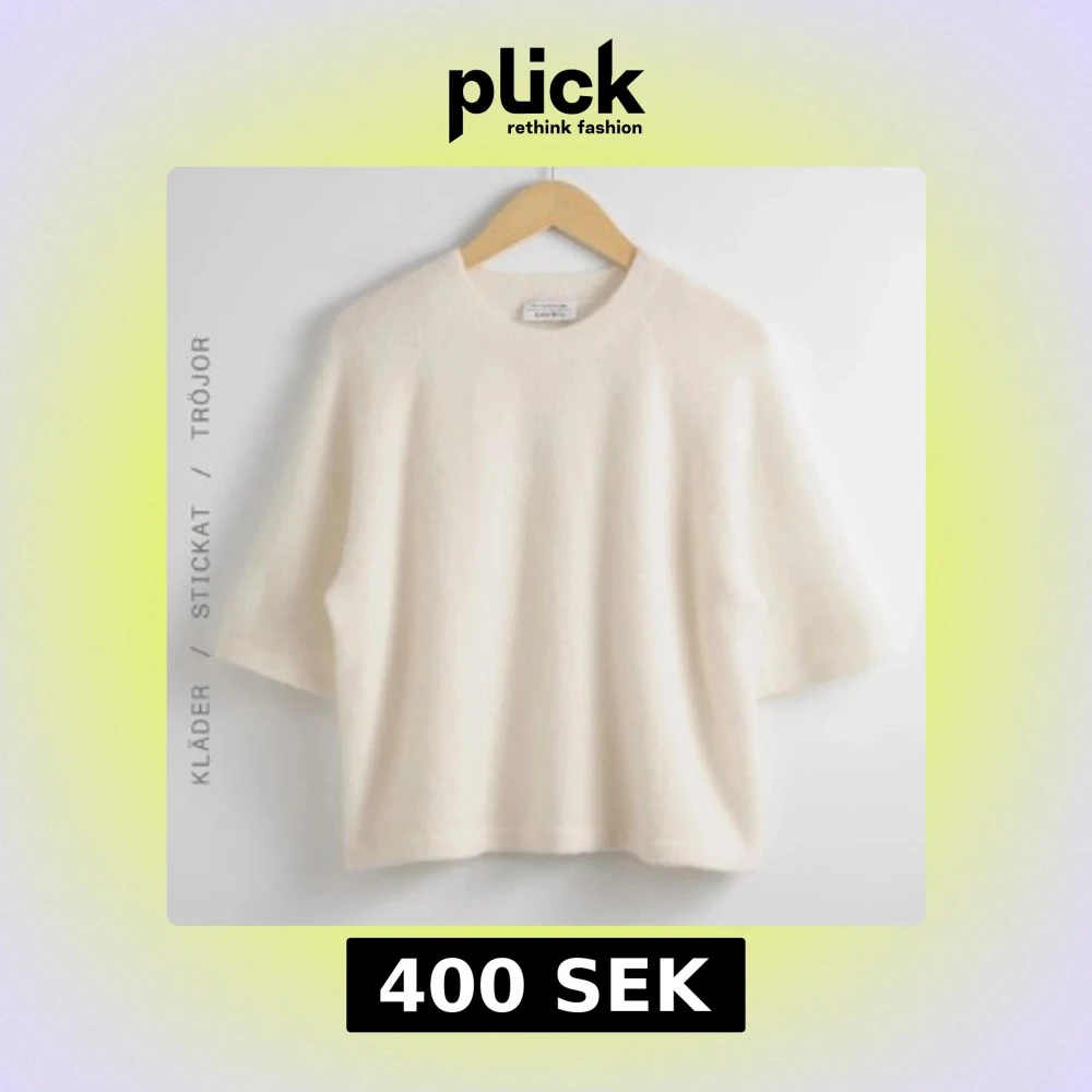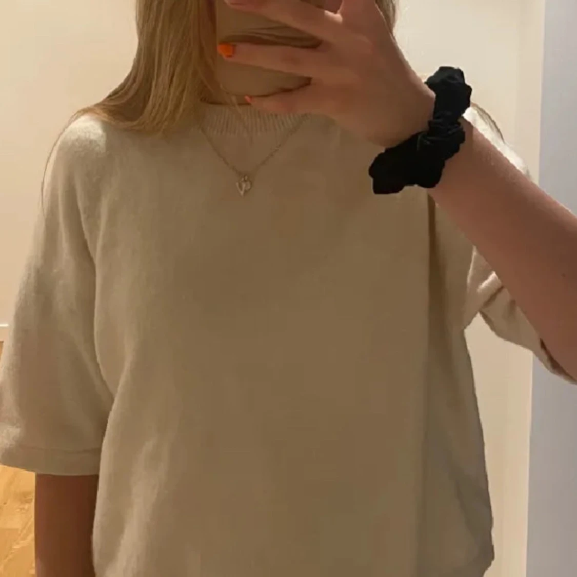 Supermjuk och fluffig vit stickad tröja från & Other Stories. Tröjan har en rund halsringning och korta ärmar, vilket ger en chill och avslappnad vibe. Perfekt att styla med jeans eller kjol för en enkel men snygg look.