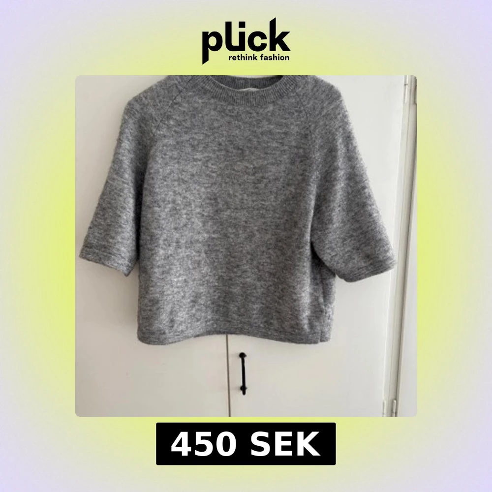 Mysig grå stickad tröja med korta ärmar och rund halsringning. Tröjan har en avslappnad passform och är perfekt för lager-på-lager. Enkel och stilren design som funkar till många olika looks.
