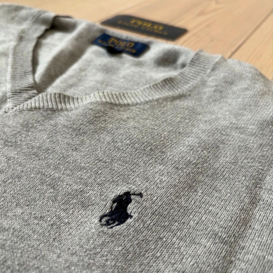 Tvär skön grå v-ringad tröja från Polo Ralph Lauren med klassisk broderad logga på bröstet. Tröjan har långa ärmar och ribbade muddar vid ärmslut och nederkant. Perfekt för lager-på-lager och stilrena outfits. PRIS KAN DISKUTERAS!! Den passar ungefär runt 158! Använd endast 2 gånger!