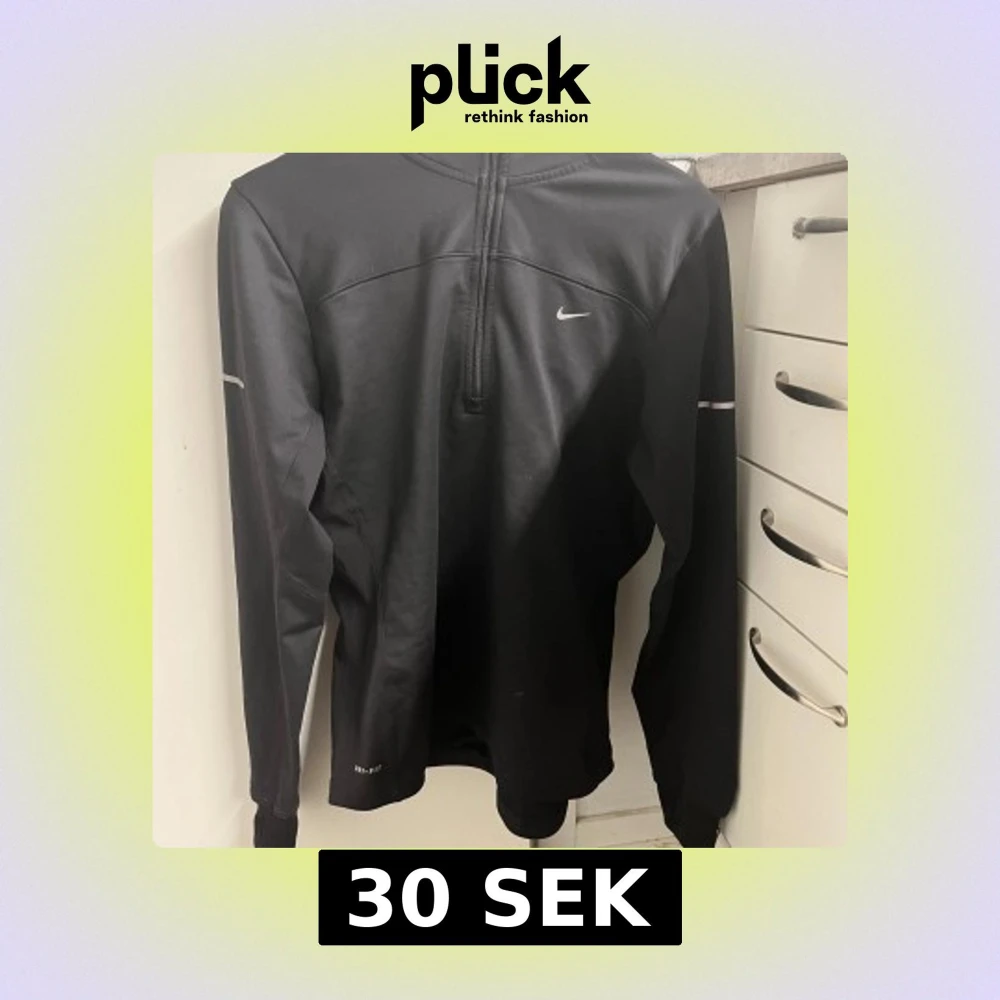 Snygg svart långärmad tröja från Nike med dragkedja och reflekterande detaljer. Perfekt för träning med bekväm passform och tumhål vid ärmsluten. Nike-logga i reflex