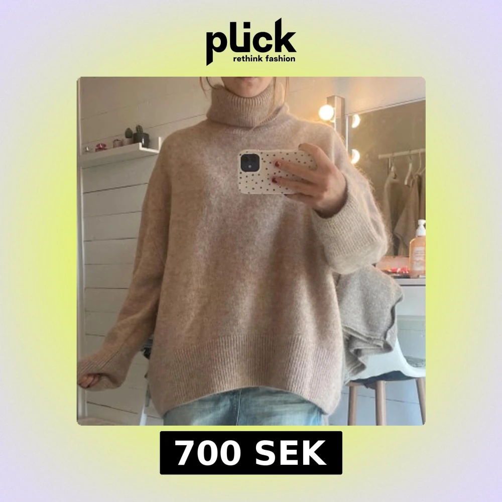 Supermysig oversized polotröja i beige med bred ribbad kant nertill och vid ärmslut. Tröjan har hög krage och är stickad i en mjuk ullmix, perfekt för lager på lager under kyliga dagar. Passformen är loose och ärmarna är långa för extra comfort.