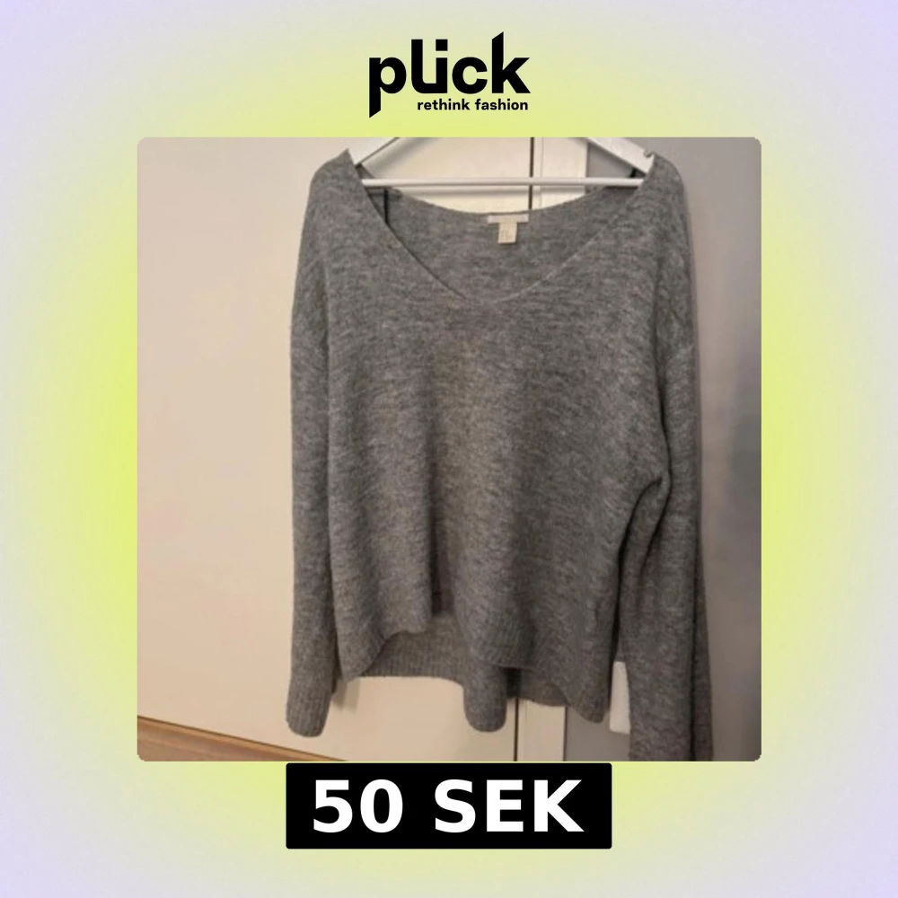 Grå stickad tröja från H&M med v-ringad hals och lång ärm. Använd men fortfarande mycket gott skick. Lite oversized