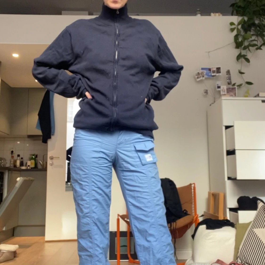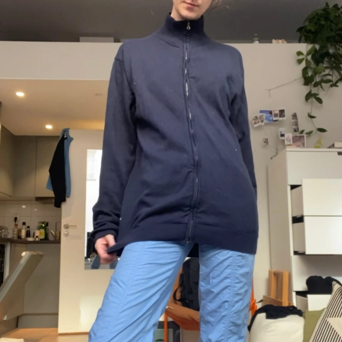 Blå tjocktröja, zipup, polo