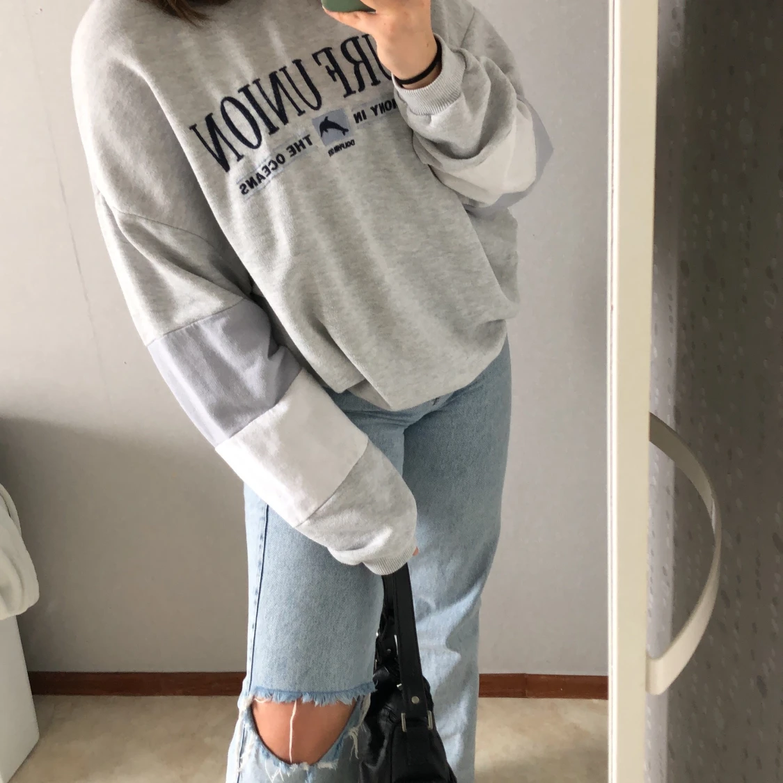 SERIÖSA KÖPARE ENDAST❤️ Grå oversized sweatshirt med broderingstryck💕 Säljer den nu för 300kr i stället!!! Skriv till mig privat, FÖRST TILL KVARN