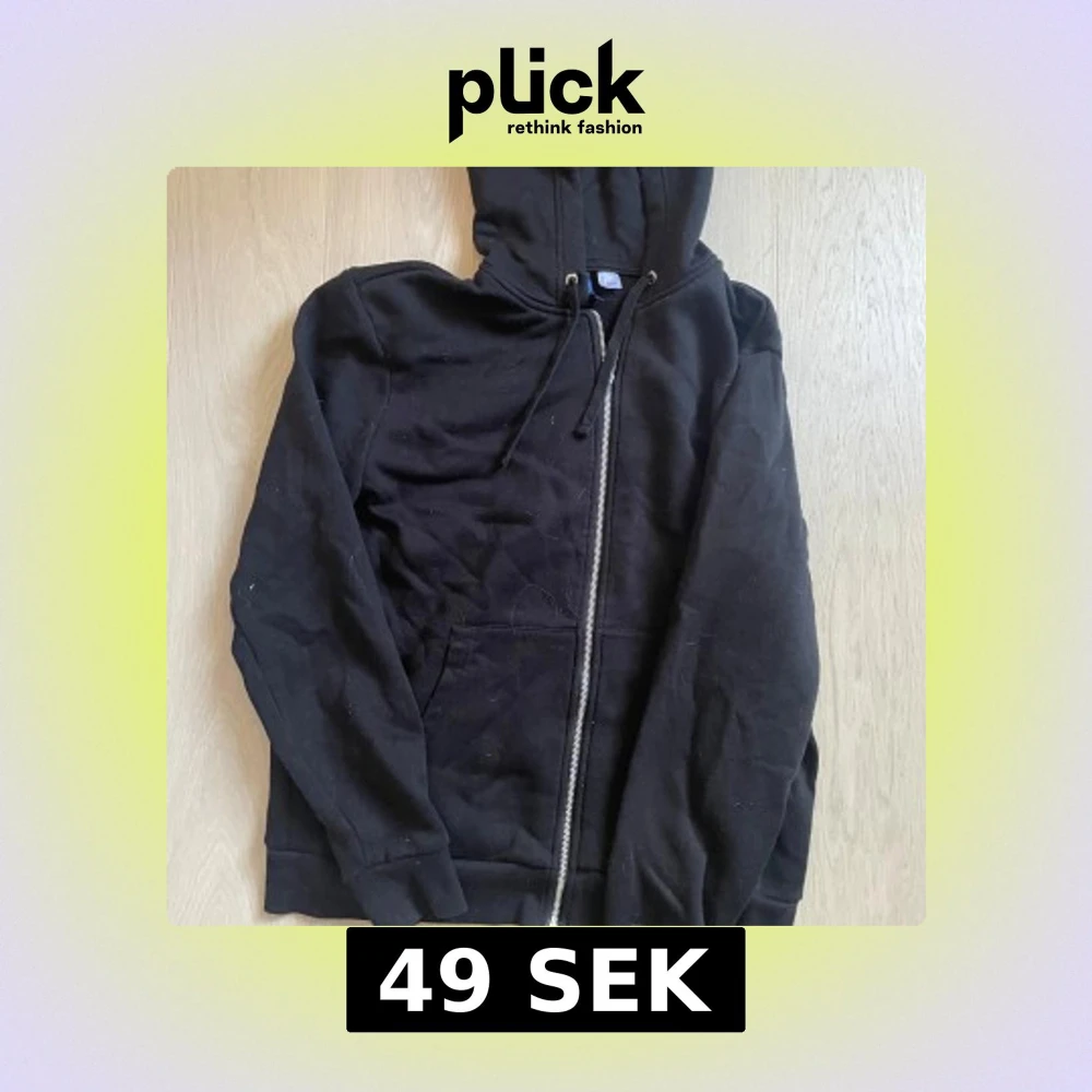 Svart hoodie från Divided med dragkedja framtill och huva med dragsko. Tröjan har två fickor på magen och är tillverkad i mjukt material, perfekt för en avslappnad stil. Pyttelite nopprig på insidan