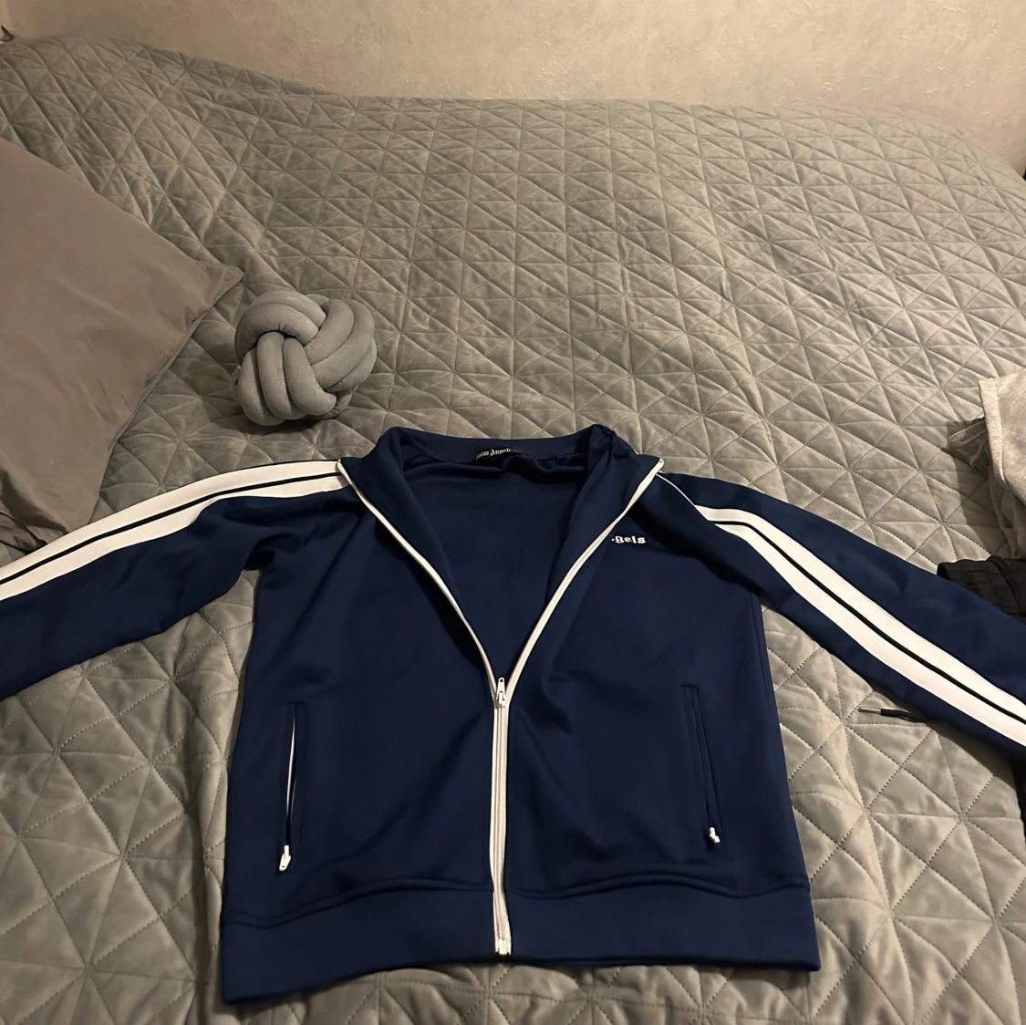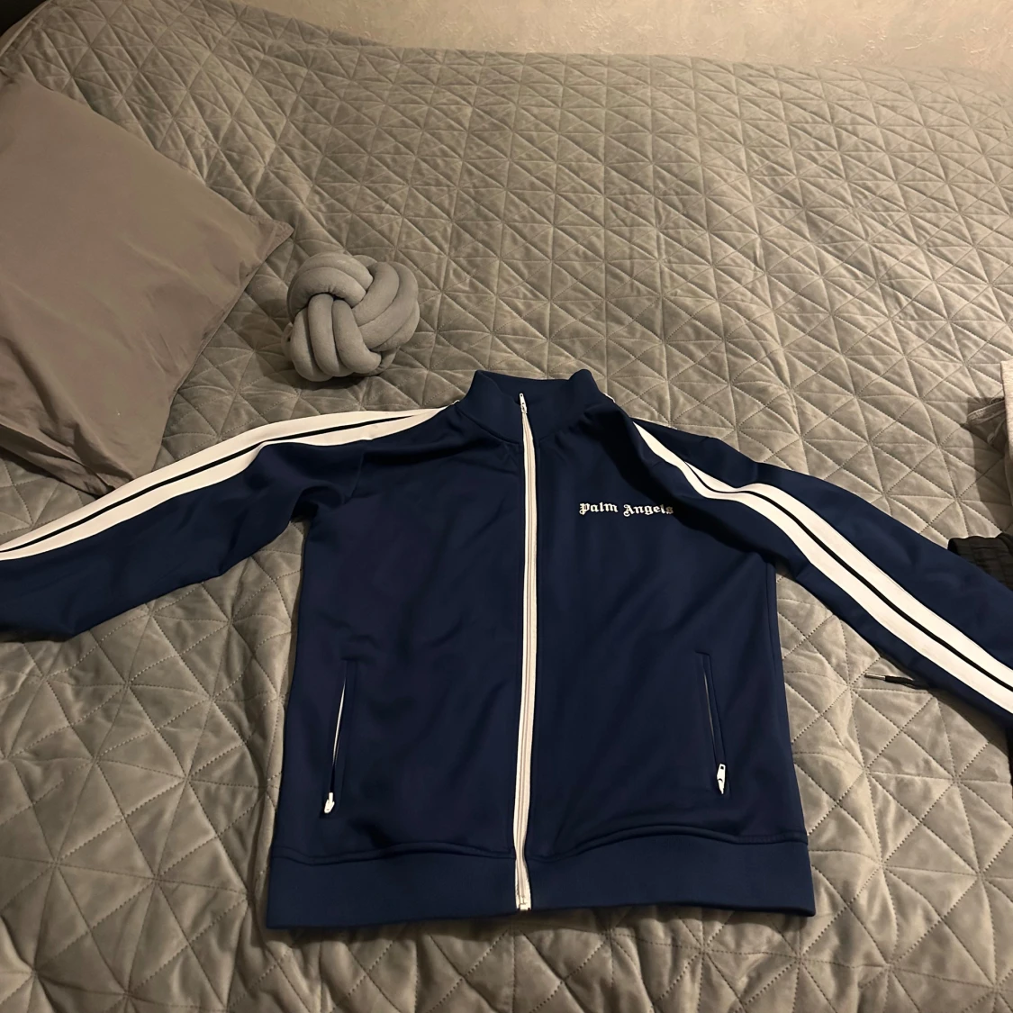 Dett är en stilren och trendig Palm Angels-kofta i en djup blå nyans som jag tycker är den snyggaste färgen på dessa koftor. Och något som gör denna koftan till det bättre är att man kan variera ganska mycket när man man vill ha den på sig, du kan ha den på fest, till middagskväll eller även till en vanlig enkel dag i skolan. Och tröjan är ganska bekväm att ha på sig, så för mer bilder och funderingar tveka inte!