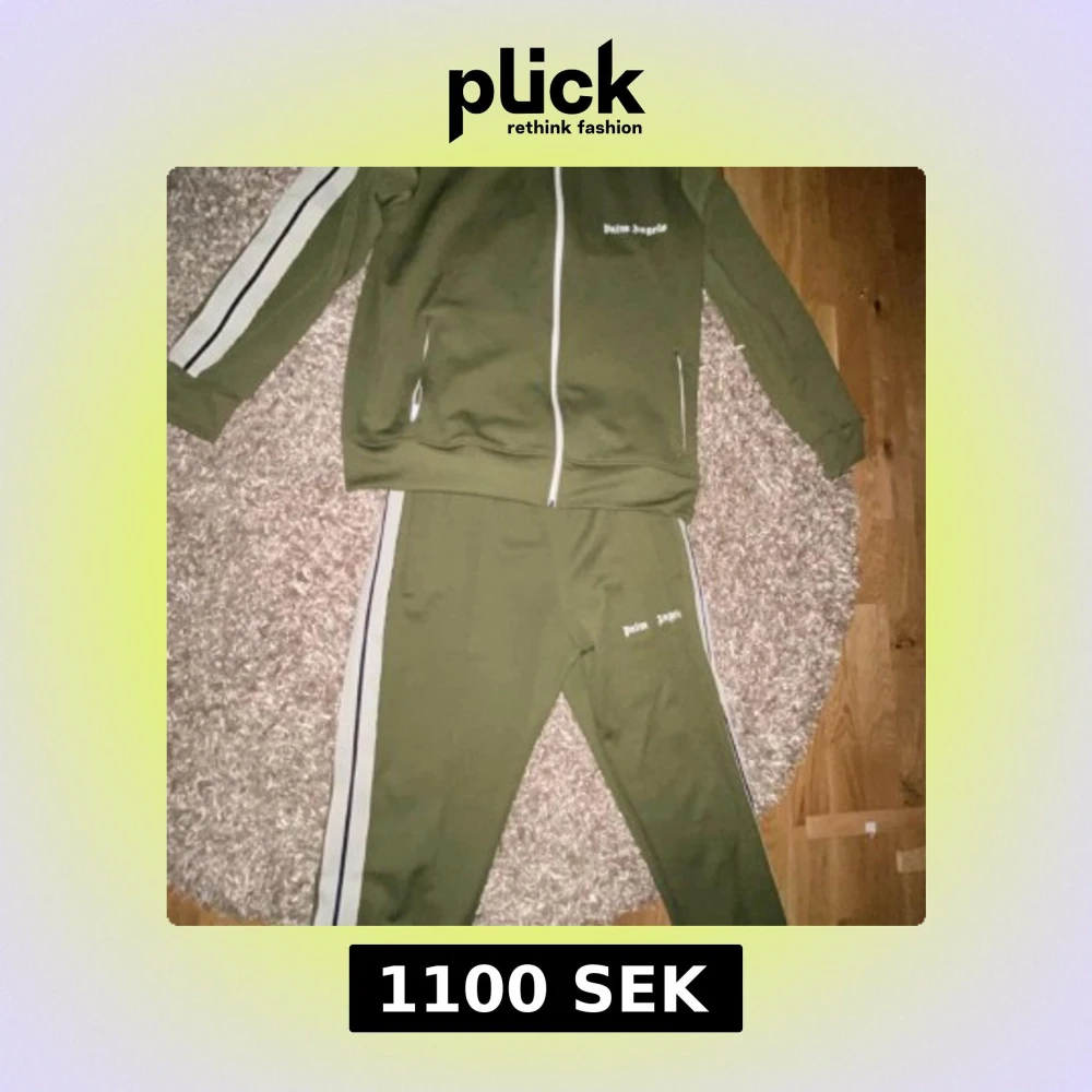 Snygg olivgrön dress från Palm Angels med vita ränder längs ärmar och ben. Jackan har dragkedja och sidofickor. Perfekt helt ny tvättad använd 2 gånger finns ej kvitto. Pris kan även sänkas vid mer information kontakta mig.