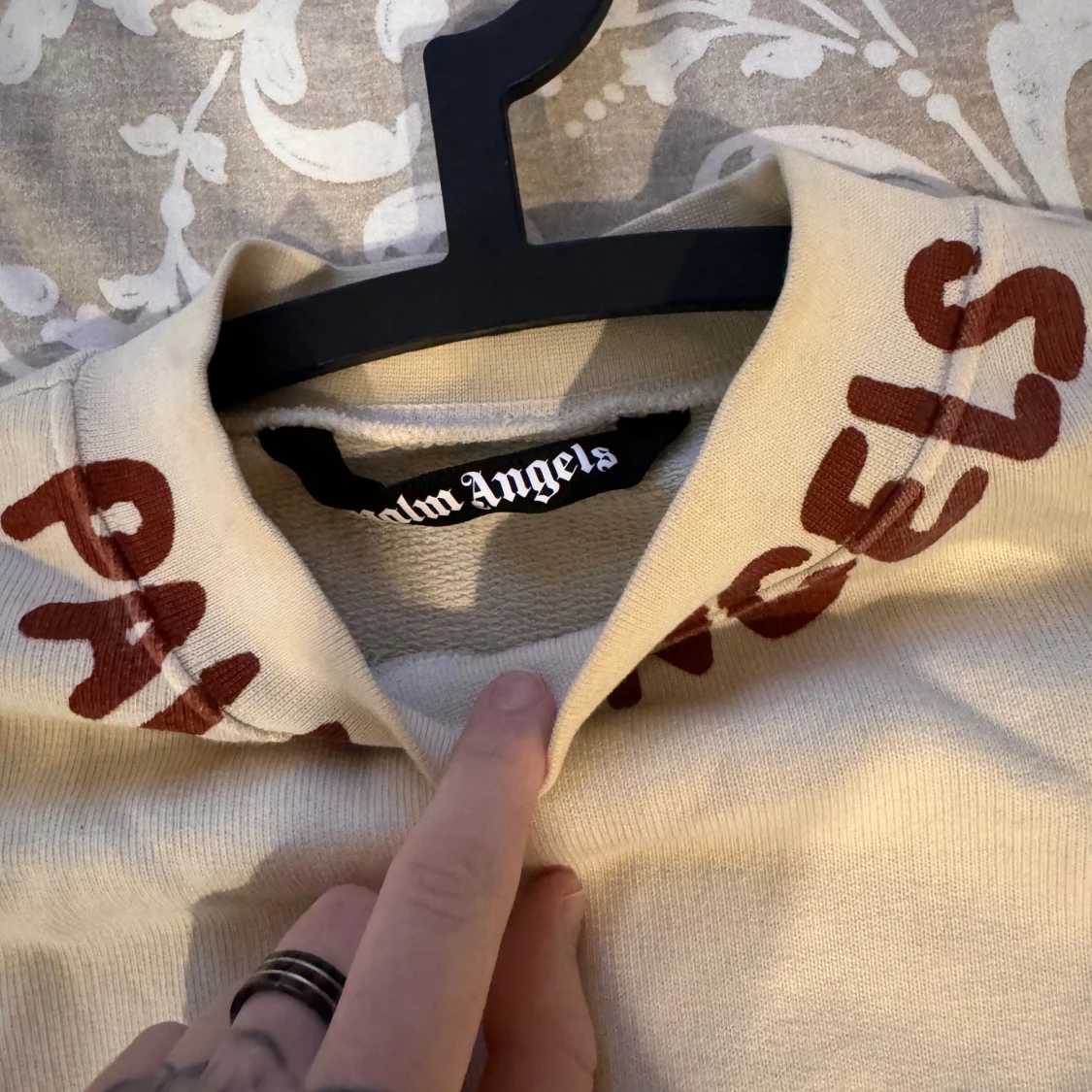 Säljer en stilren beige tröja från Palm Angels med deras logga i rött runt halsen. Kommer inte till användning då jag märkeskläder ej tilltalar mig på samma sätt som de gjorde förr. Hör av er vid intresse gött folk!