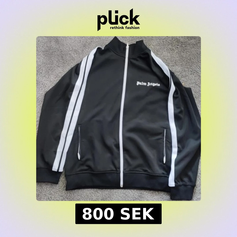 Svart track jacket från Palm Angels med vita ränder längs ärmarna och broderad logga på bröstet. Jackan har hel dragkedja framtill, ståkrage och två fickor med dragkedja. Tillverkad i 100% polyester för en sportig vibe.