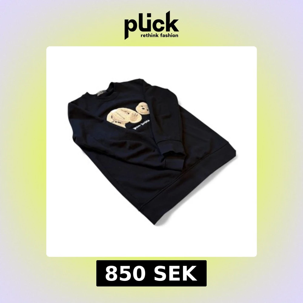 Svart sweatshirt från Palm Angels med ett stort broderat motiv av en beige nalle på bröstet. Tröjan har rund hals, ribbade muddar och är långärmad. Materialet är mjuk bomull och passformen är normal. Perfekt för dig som gillar streetwear och coola detaljer. Priset är ej hugget i sten, tveka inte på att skriva vid frågor