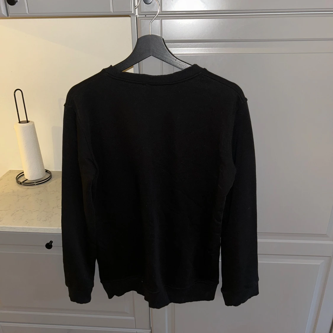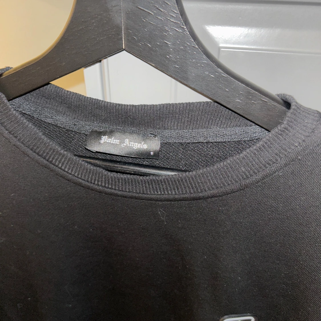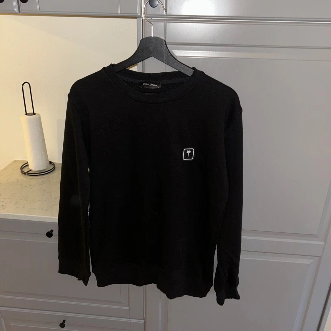 Svart långärmad sweatshirt från Palm Angels med rund hals och liten vit logga på bröstet. Tröjan har en klassisk passform och är tillverkad i mjuk bomull, perfekt för en clean och stilren look.