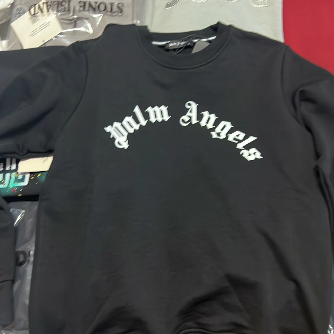 Svart sweatshirt från Palm Angels med klassisk vit logotyp i gotisk stil över bröstet. Tröjan har rund halsringning och långa ärmar. Tillverkad i mjuk bomull som känns skön mot huden. Perfekt för dig som gillar streetwear och vill sticka ut. Finns i alla storlekar