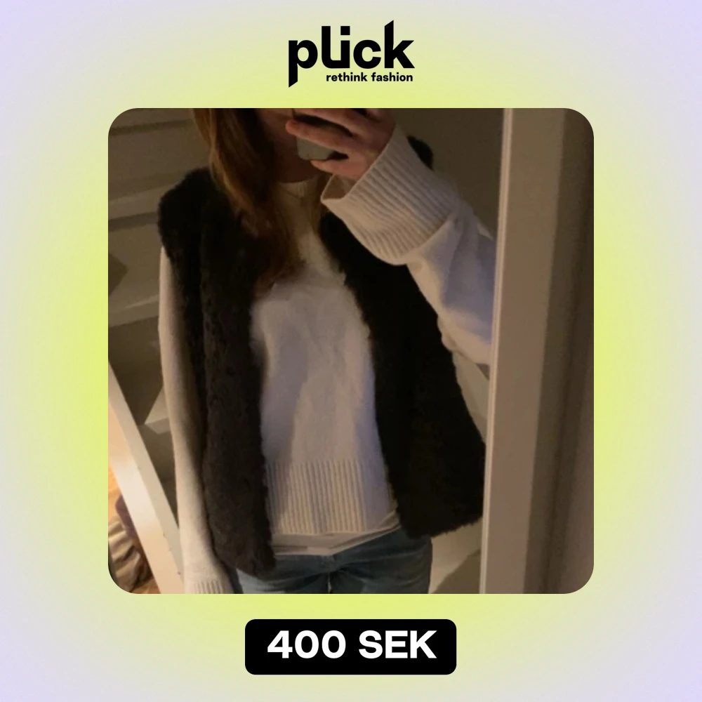 Mörkgrå pälsväst. Den har dömda knappt men en knapp saknas dock men inget som påverkar västen utseende och knappen är dessutom i mitten så om man fortfarande knäppa västen helt. Priset kan diskuteras vid snabb affär.