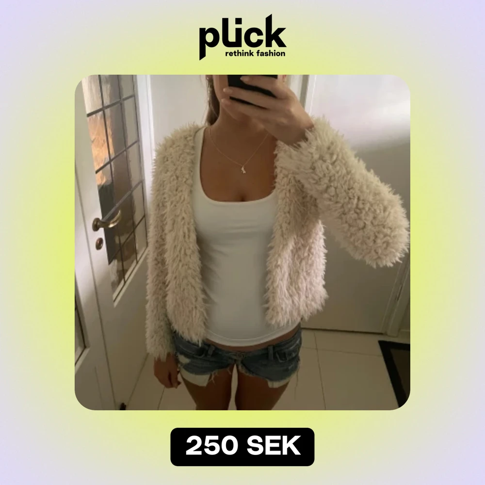 Fluffig kofta från ginatricot, den är typ rosa/beige