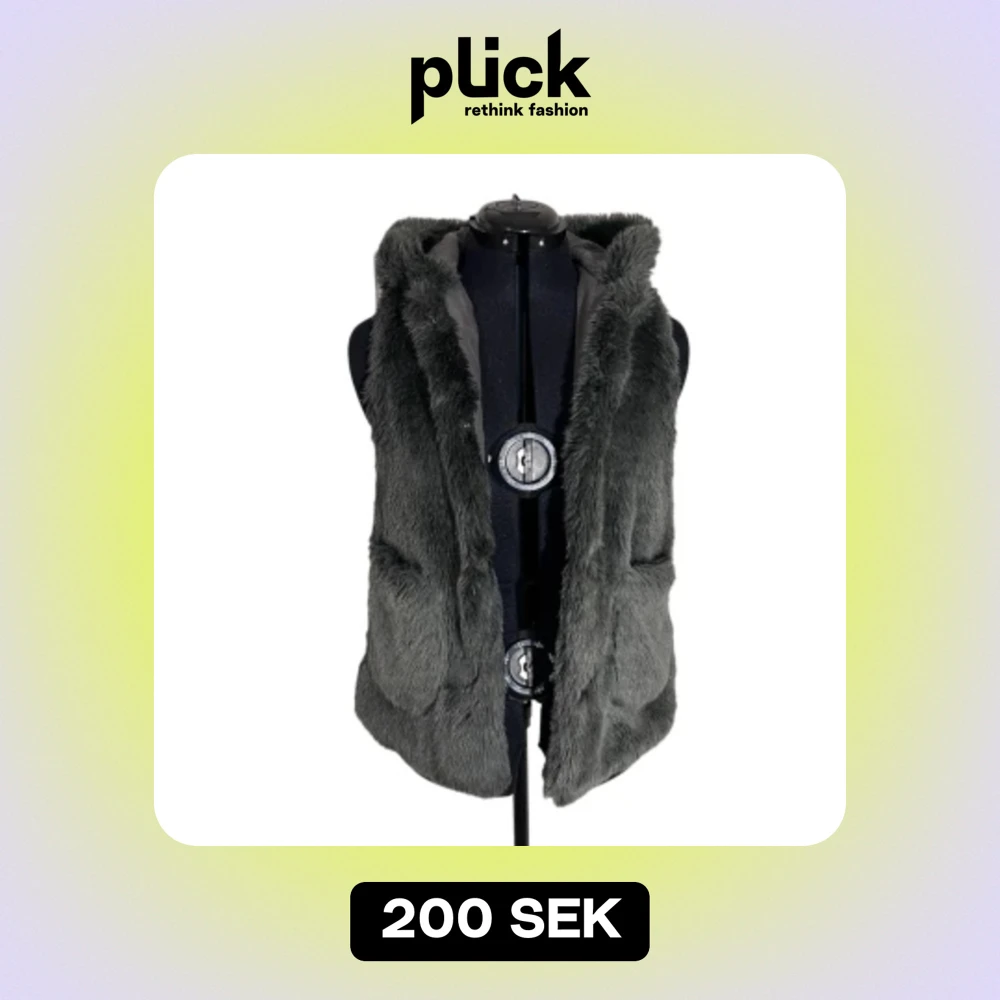 Suuuper mysigt päls väst med luva, knappar och två fickor!