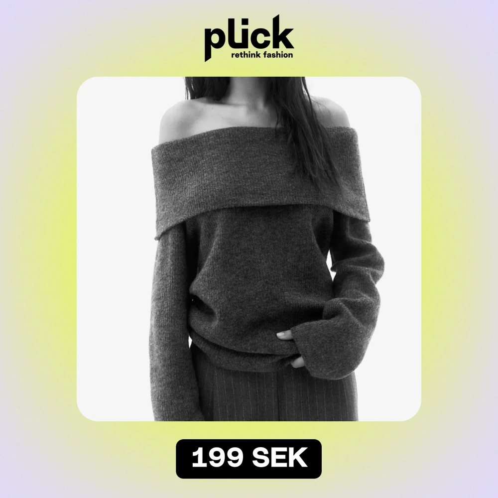Säljer en superfin mörkgrå offshoulder tröja som är perfekt för höst och vinter. Den är stickad och jätte mysig🥰