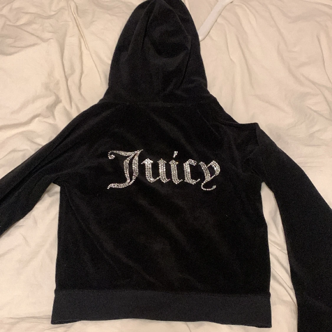 Jag säljer denna jätte fina juicy couture tröjan som jag köpt på JD! Den är storlek S men passar oxå M & XS!💗 Den är väl Använd och den har tappat några stenar men inget som syns! På J:et så har det skavt av lite av färgen som finns på bild 3.Ny pris 1100