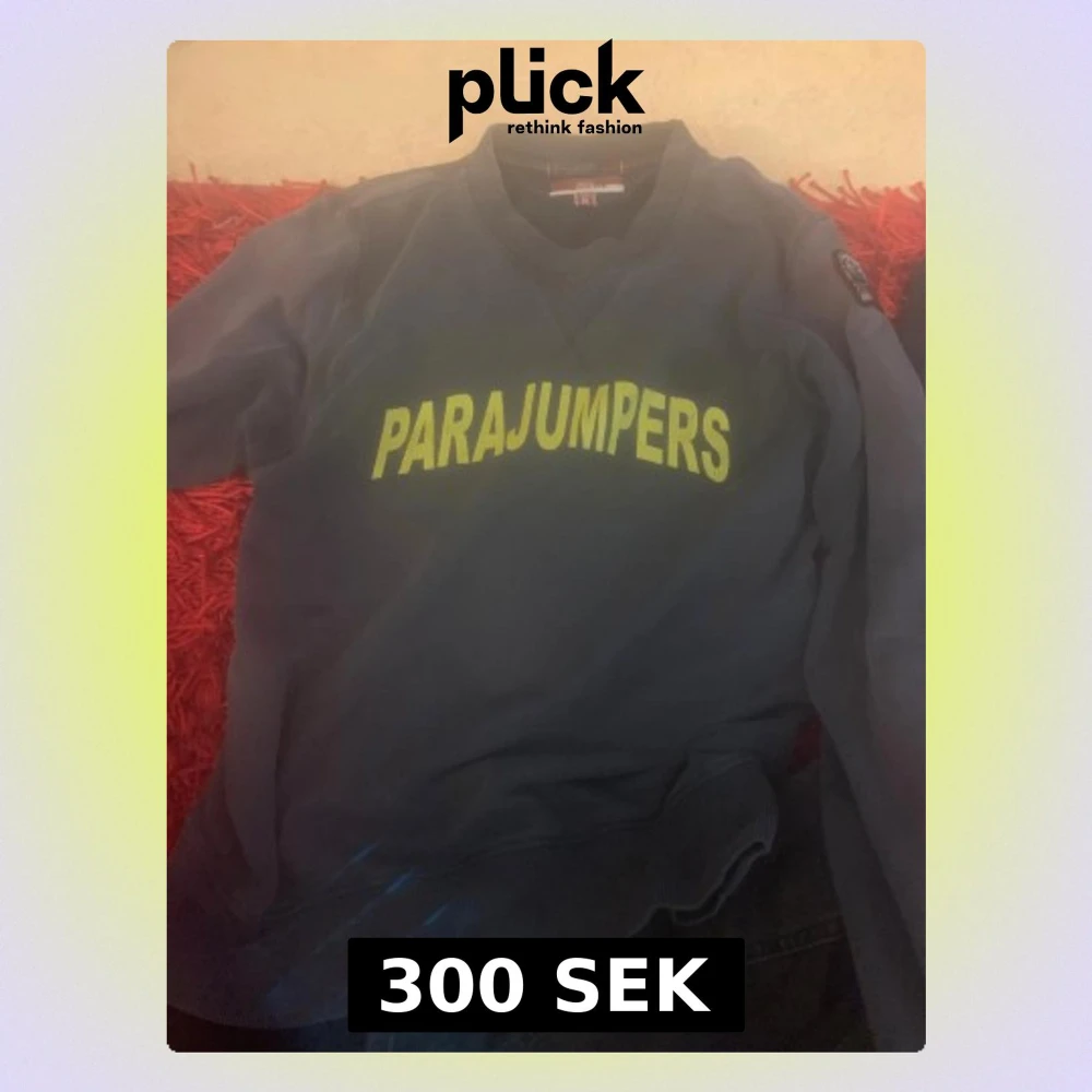 Säljer en mörkgrå fleece-tröja från Parajumpers med stor gul logga på bröstet och klassisk patch på ärmen. Tröjan har rund halsringning och ribbade muddar. Perfekt för kyliga dagar och enkel att matcha med jeans eller joggers. Tröjan är i okej skick och passar mig inte längre därav priset det låga priset köpt på nk för 999 kr på rea