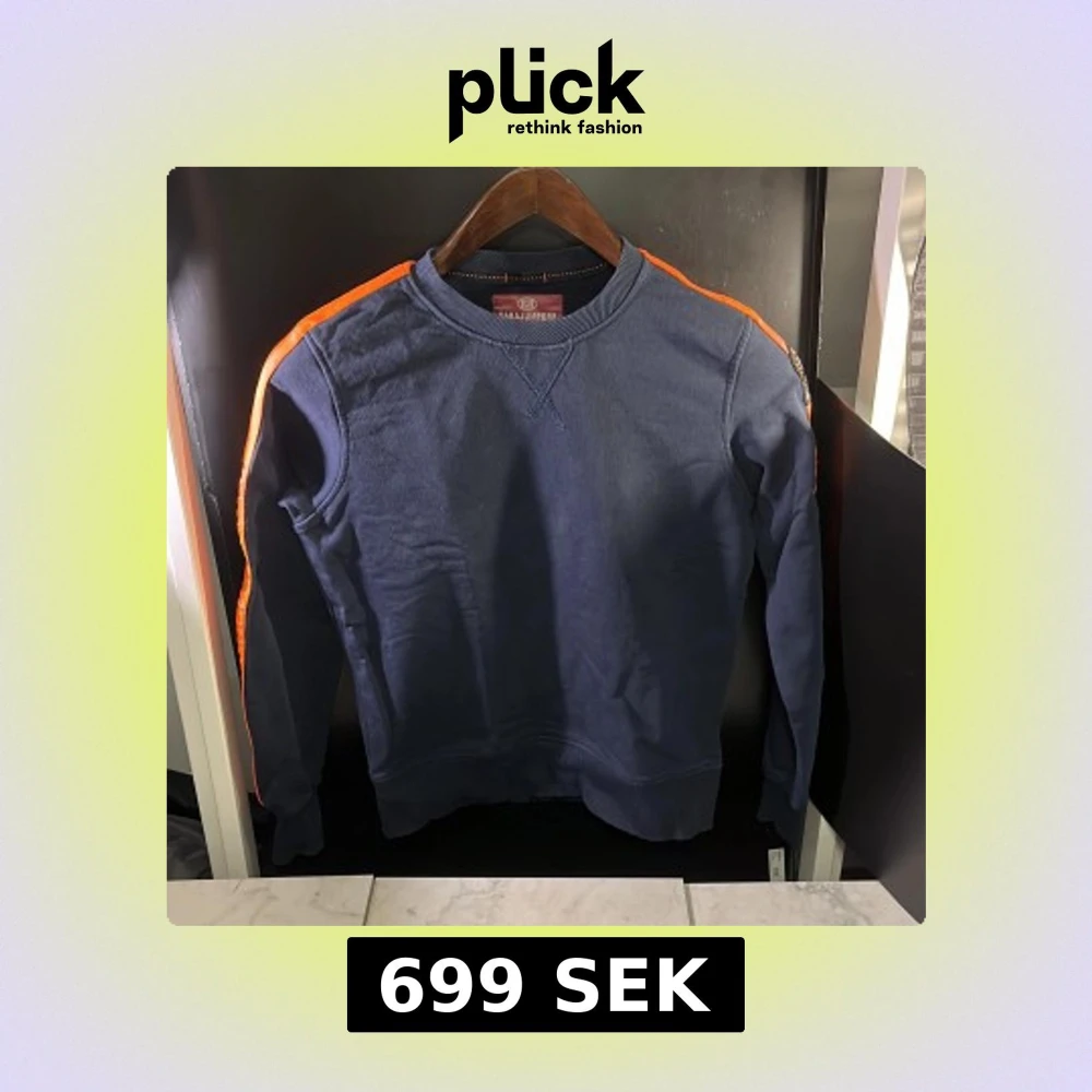 Säljer en mörkblå fleece tröja från Parajumpers med orange detaljer längs ärmarna och en patch på axeln. Tröjan har långa ärmar och ribbade muddar vid ärmslut och nederkant. Perfekt för kyliga dagar! Hör av er vid minsta fundering🙌