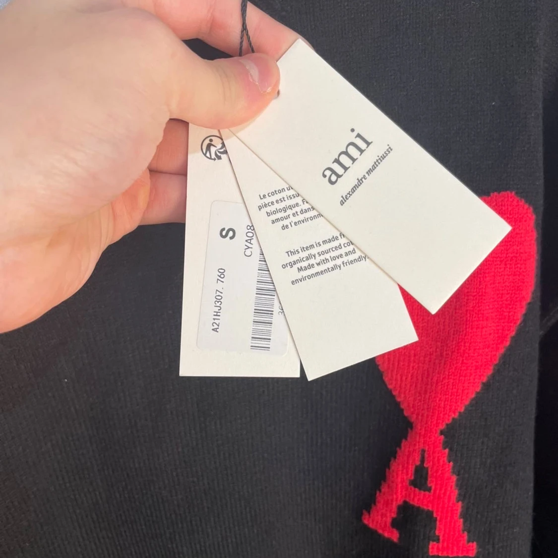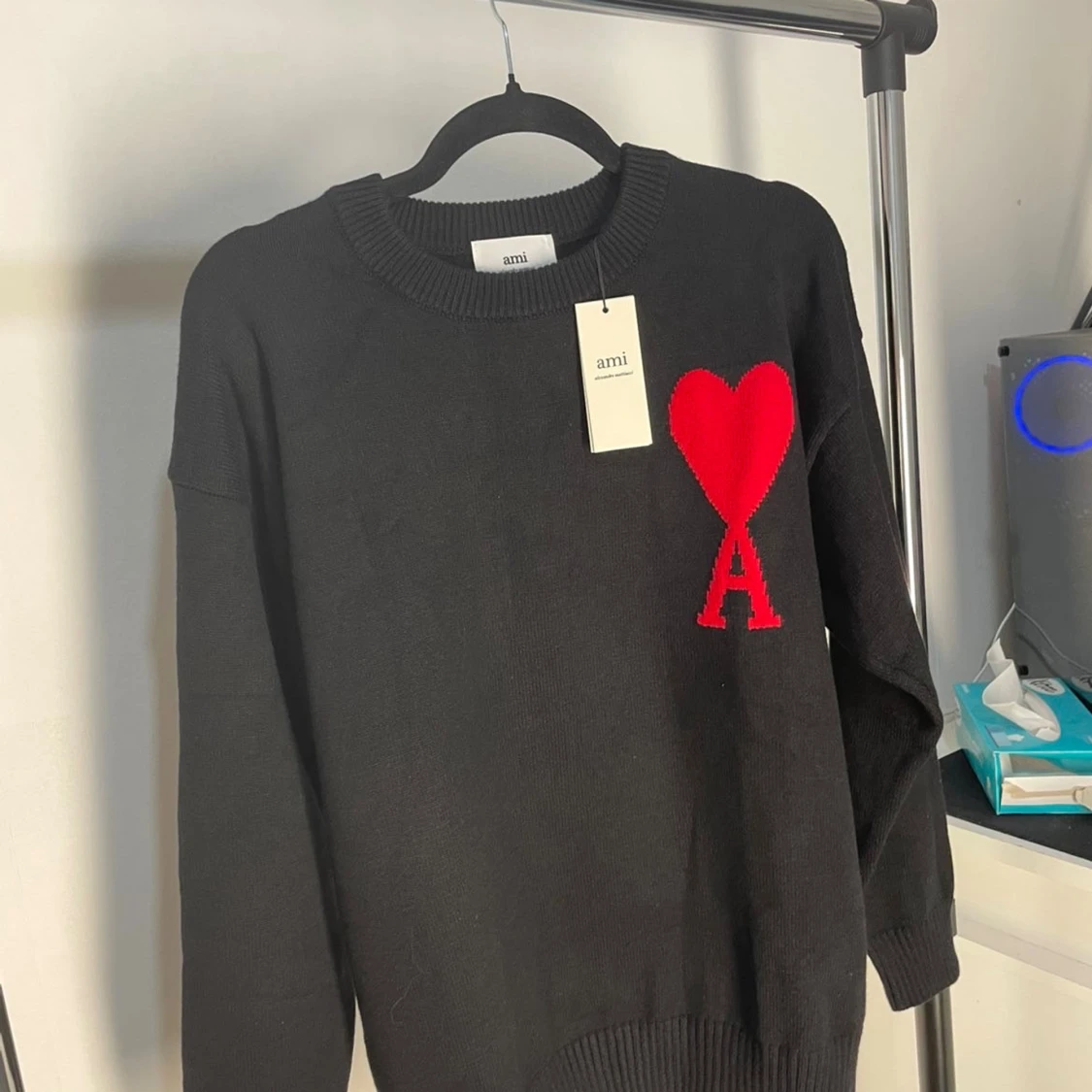 Svart stickad tröja från Ami Paris, väldigt stilig tröja. Passar dig som gillar unika plagg.👌