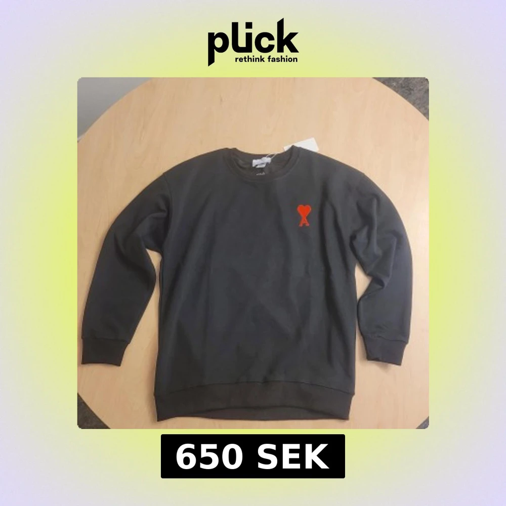 Svart sweatshirt från AMI Paris med rött broderat hjärta och A på bröstet. Klassisk rund halsringning, ribbade muddar och lång ärm. Materialet är mjuk bomull som känns skönt mot huden. Perfekt för dig som gillar stilrena plagg med en twist.