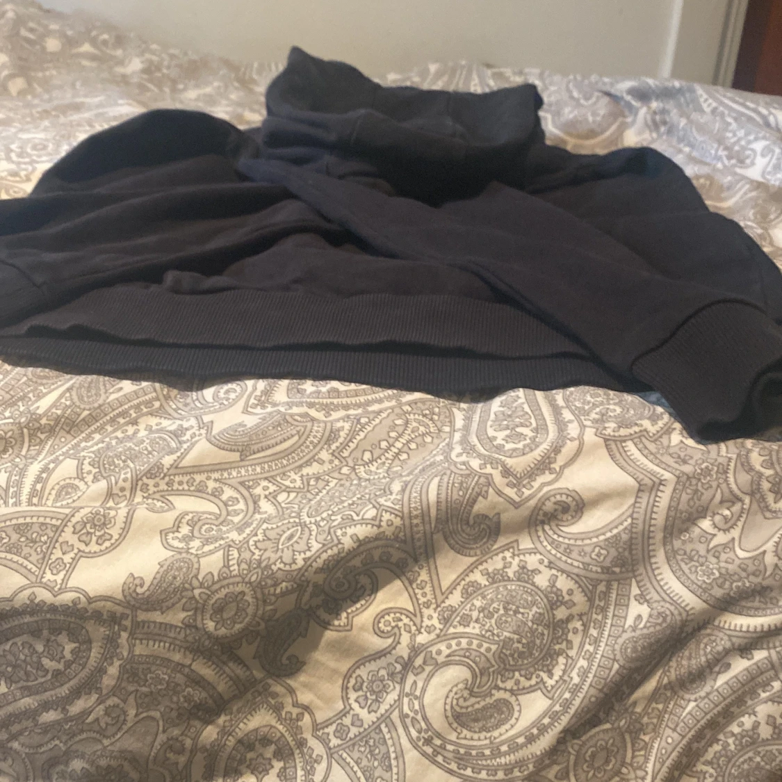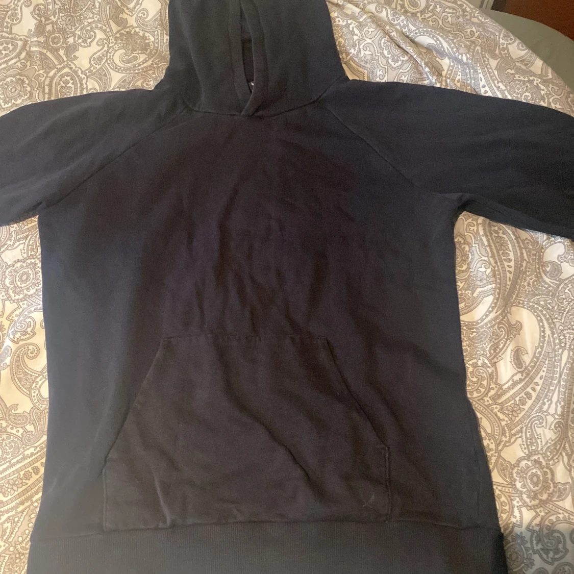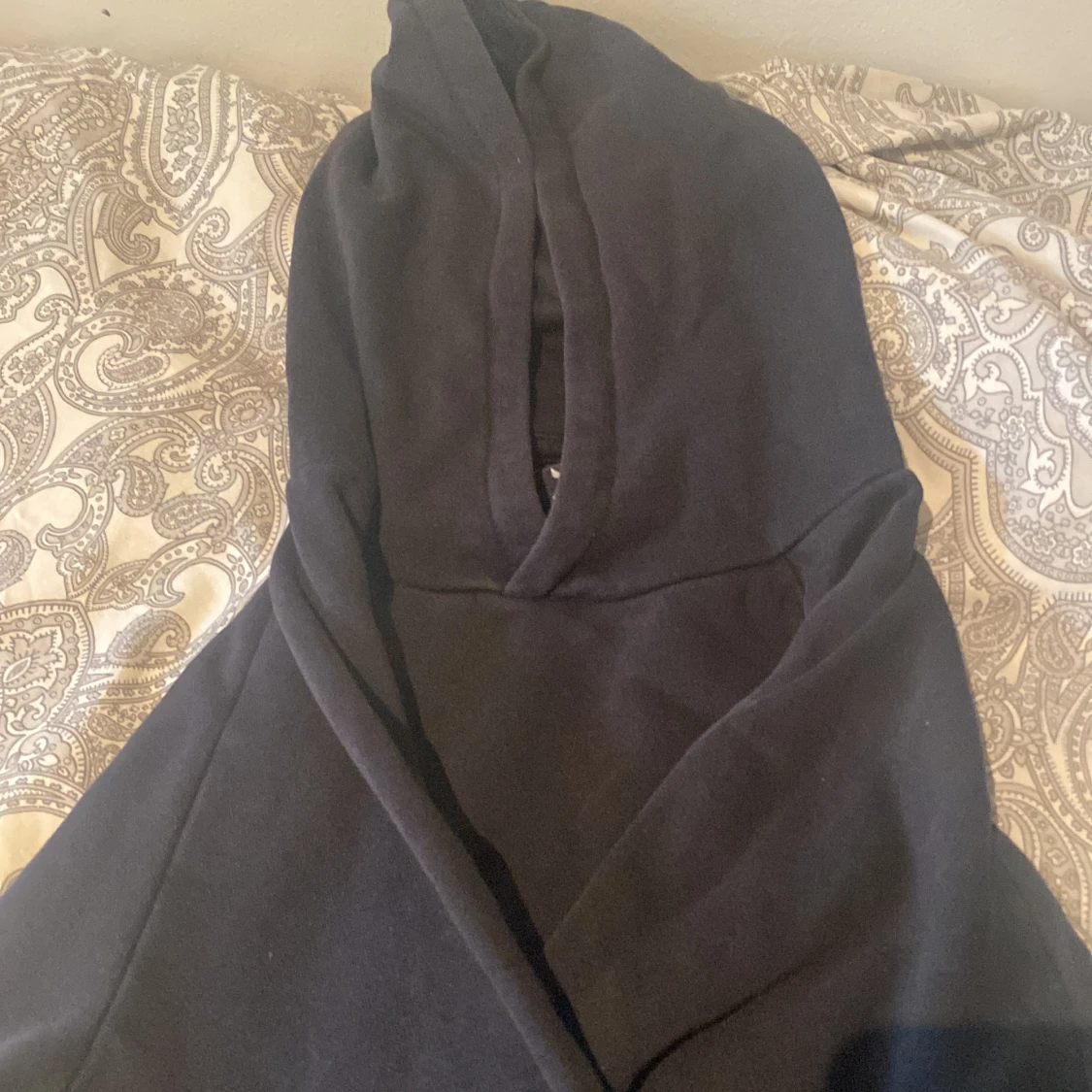 En klassisk svart hoodie med huva och stor magficka framtill. Tröjan har långa ärmar och ribbade muddar vid ärmslut och nederkant. Perfekt för chill dagar eller när du vill ha en enkel och stilren look.