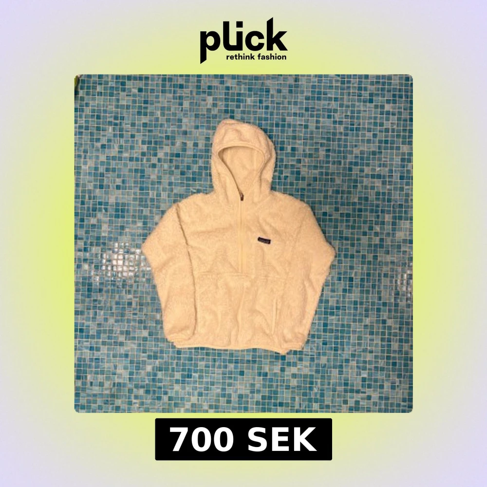 Mysig vit hoodie från Patagonia i fluffig fleece med huva och half zip-dragkedja. Tröjan har en relaxed passform, lång ärm och en stor känguruficka framtill. Perfekt för kyliga dagar när du vill vara både varm och stilren.