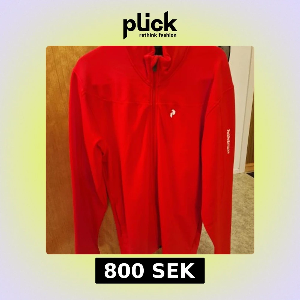 Säljer en snygg röd fleece tröja från Peak Performance i storlek XL. Tröjan har hel dragkedja framtill, lång ärm och hög krage. Loggan finns på bröstet och Peak Performance-tryck på ärmen. Perfekt för dig som gillar sportig och clean stil. Rekommenderas starkt för kallare väder.