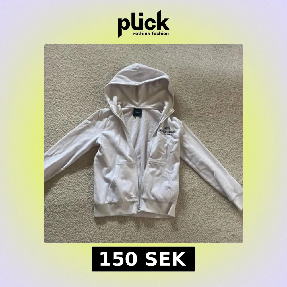 Säljer en snygg vit hoodie från Peak Performance med dragkedja och huva. Insidan är fodrad med mjuk fleece för extra komfort. Perfekt för kyliga dagar. Den har långa ärmar och ribbade muddar vid ärmslut och nederkant.