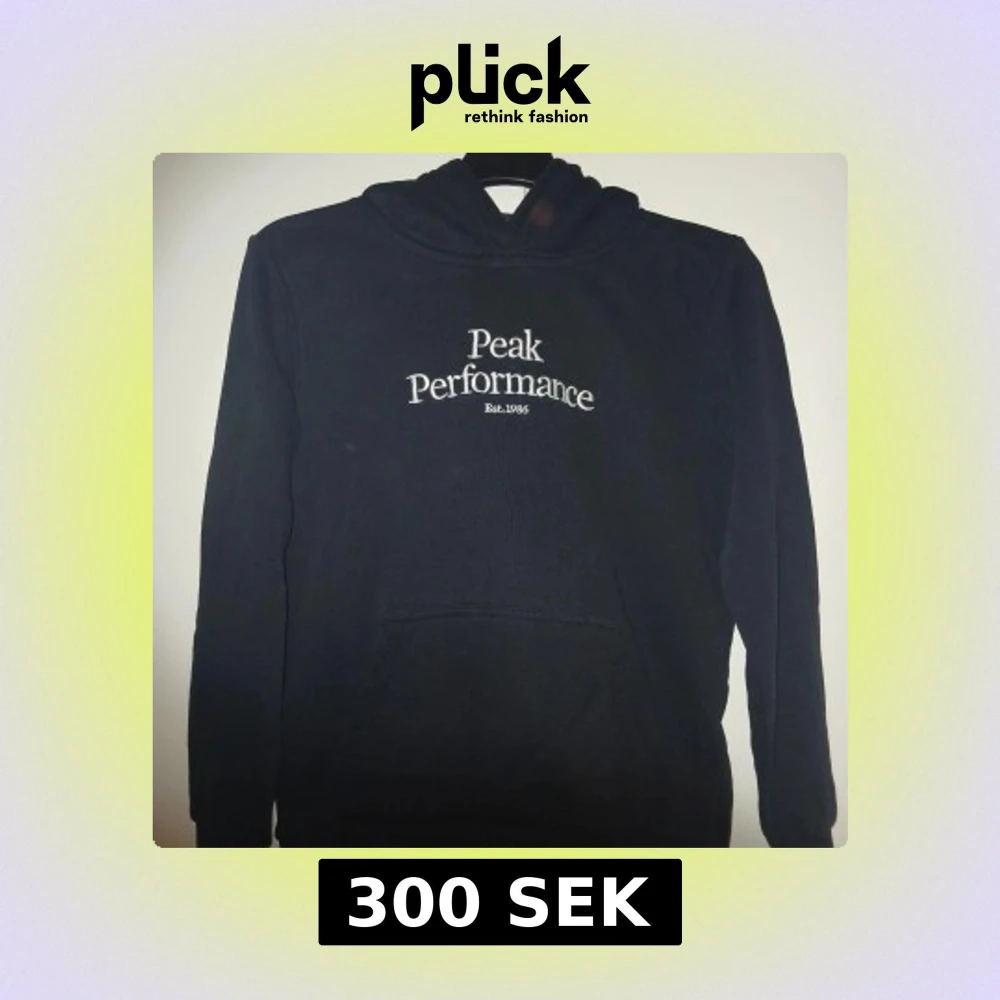 Svart hoodie från Peak Performance med vit broderad logga på bröstet. Klassisk huva och stor magficka framtill. Perfekt för chill dagar och enkel att matcha med jeans eller joggers. Barnstorlek 150